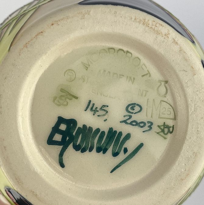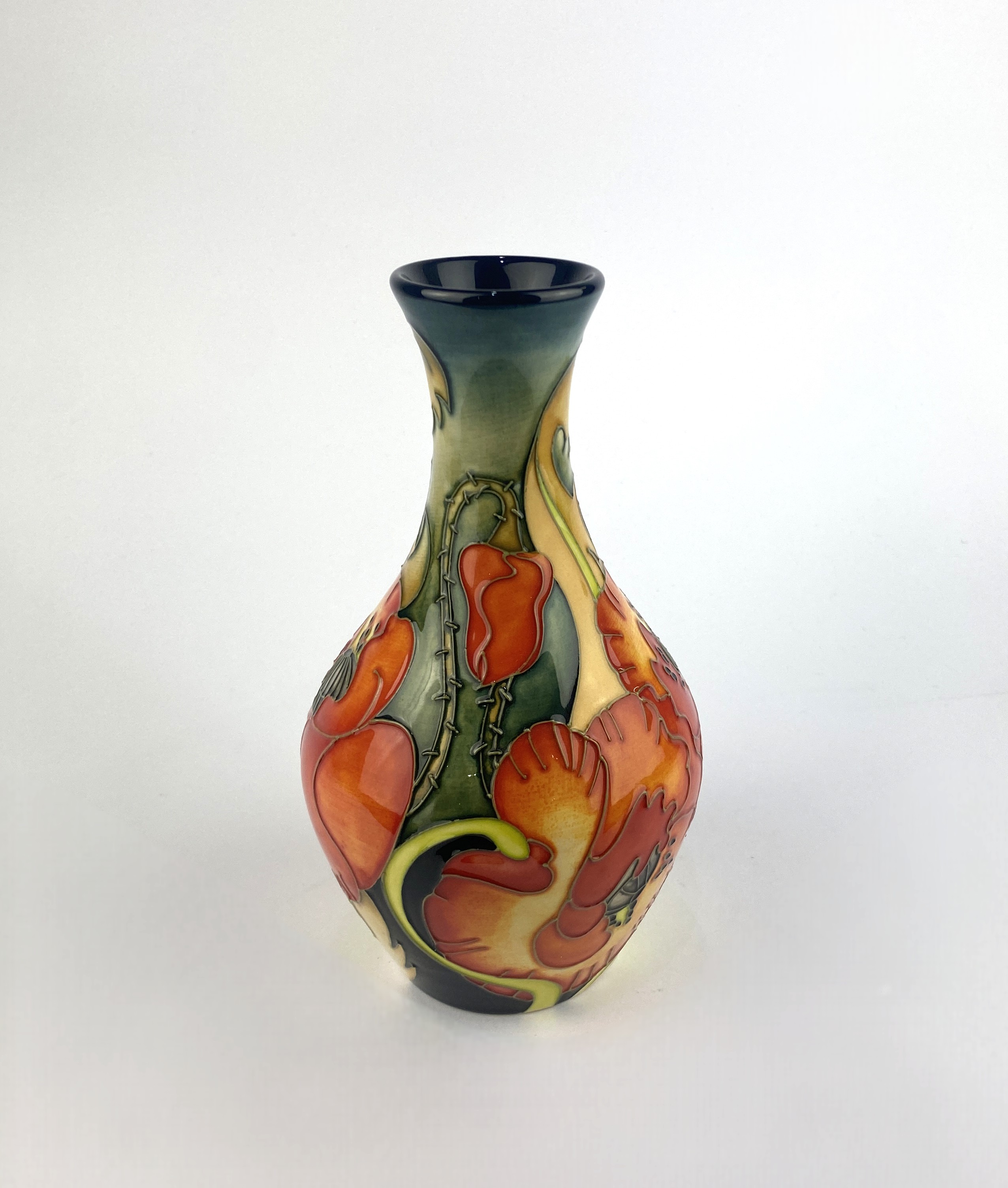 A Moorcroft Pottery 'Ruby' patterned vase, 2008, numberd 165, by Rachel Bishop, tube line decorated against the dark blue ground with floral patterm, signed and variously impressed marks to base, height 23.5cm