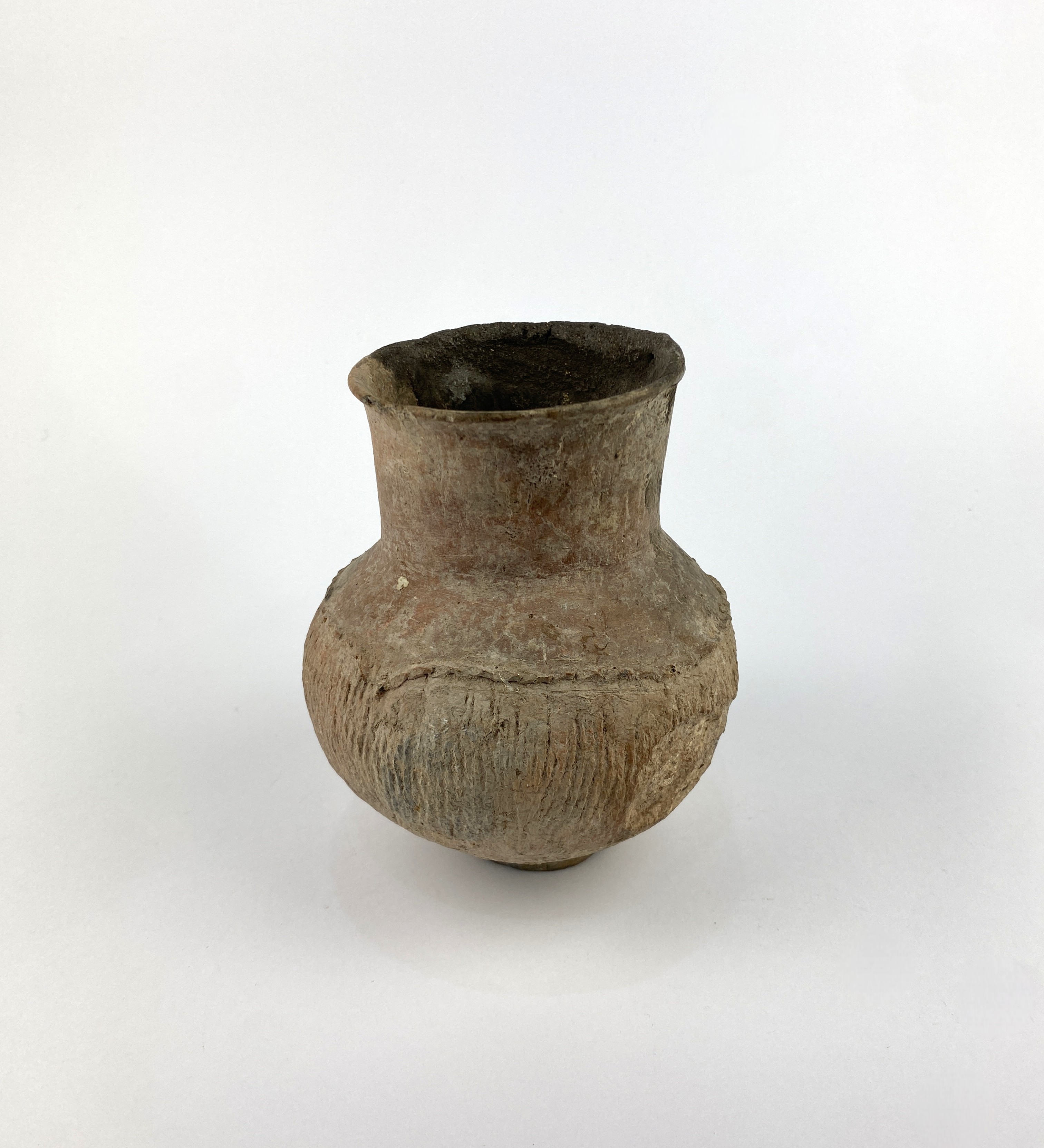 An early asian pottery jar, possibly Neolithic Thailand, c.3000BC - 1500BC, this jar presents with signs of considerable age, wear and patination, 15cm high, (af).