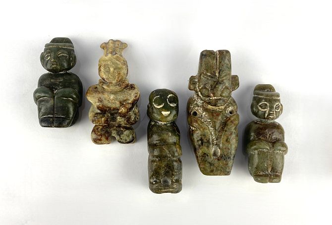 A collection of five Chinese Jade figures, believed to be c.1500 BC, all beteween 6cm and 8cm high, (5).