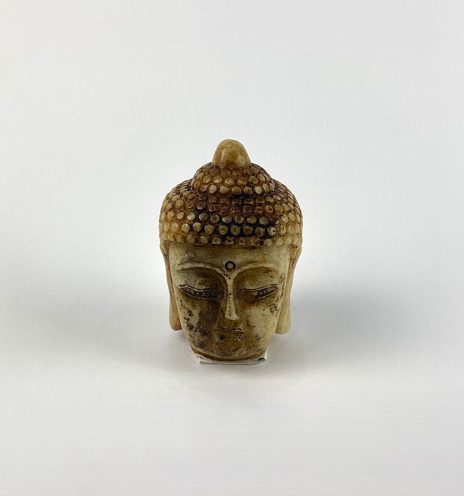 A Chinese carved jade head of Buddha, believed to be Jin Dynasty, c.375 AD, 10cm high.