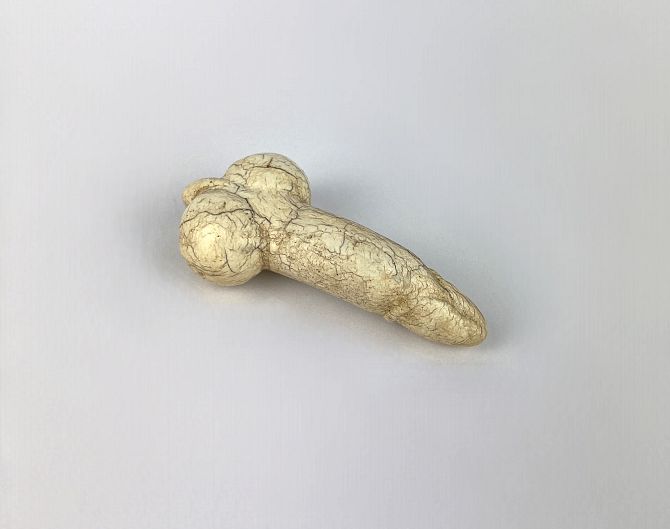 An ancient carved white stone phallus pendant, believed to be Chinese Han Dynasty, 5.5cm long.