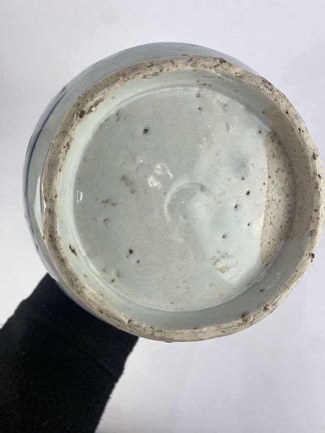 A Chinese blue and white porcelain ginger jar and cover, of baluster form, lion-...