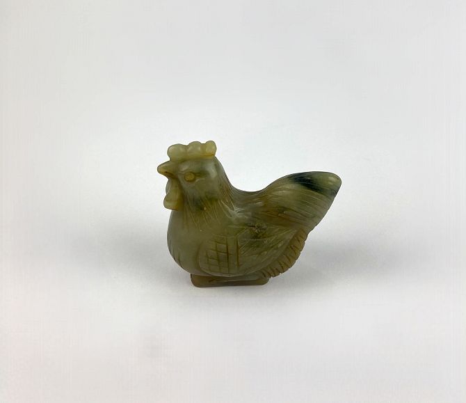 A Chinese carved model of a chicken, in jade coloured stone, height 5cm