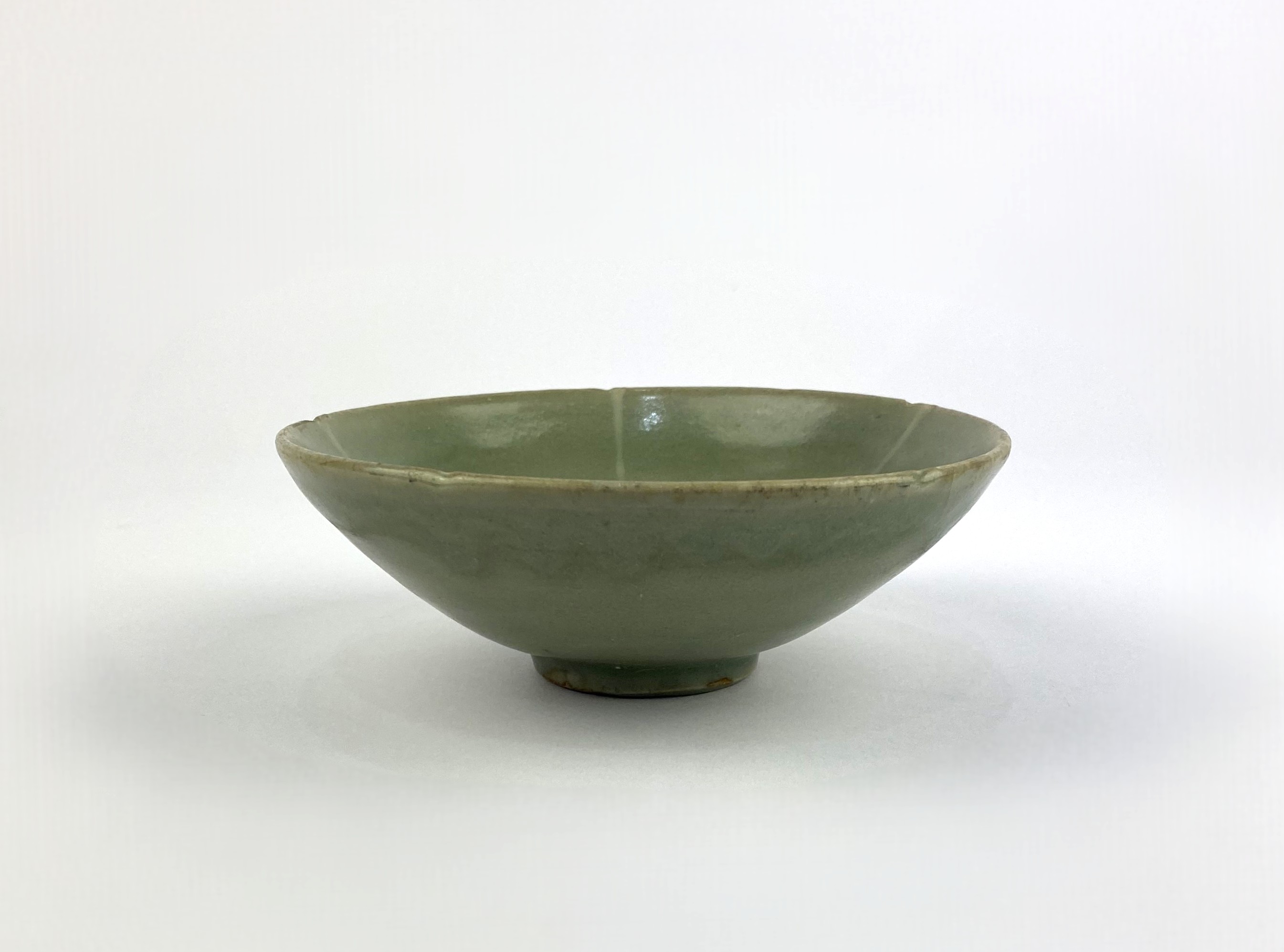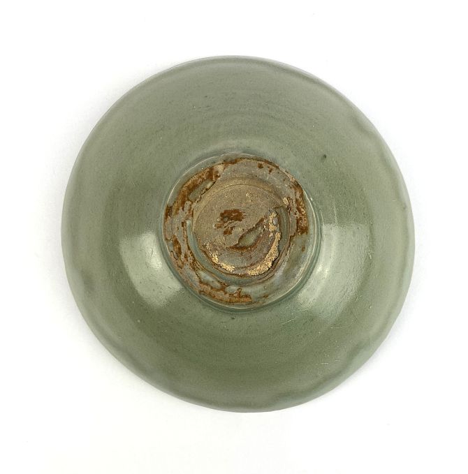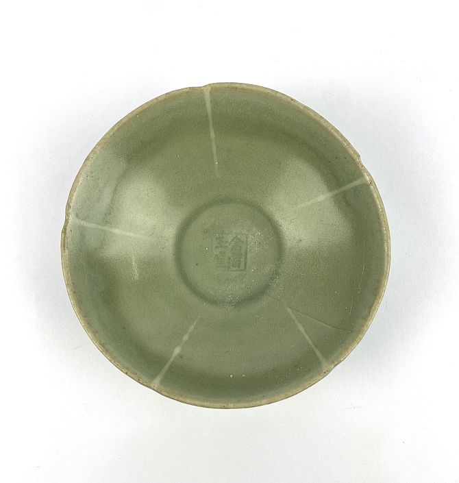 A Chinese celadon green bowl, with impressed character mark to centre, diameter 14cm