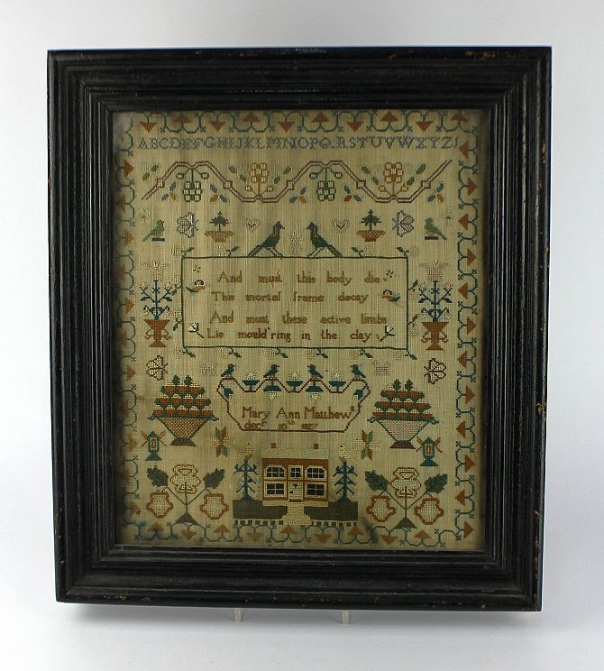 A George IV sampler Mary Ann Mathew or Mauhew, dated December 10th 1827, minor age related blemishes, 35cm by 30cm, framed, (af).