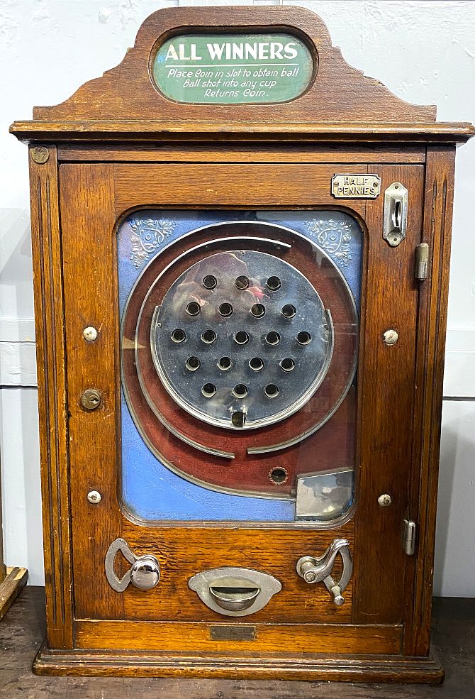 A c.1930's Automated Supplies Ltd of Birmingham 'All Winners' arcade machine, oak case with chrome mounts, 77cm mhigh.