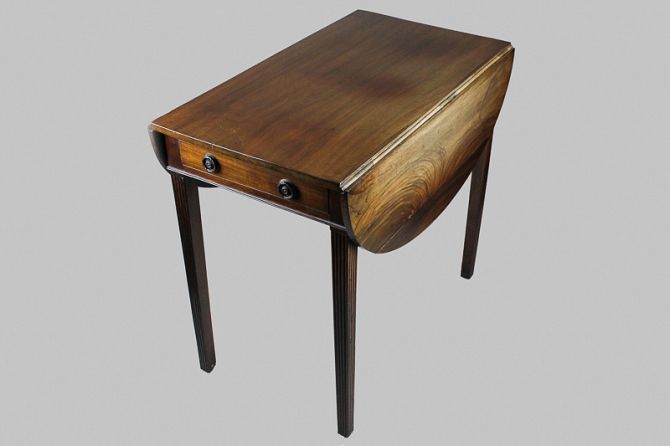 A 19th century mahogany oval Pembroke table with two drop flaps and one drawer on four reeded square tapered legs, 77cm