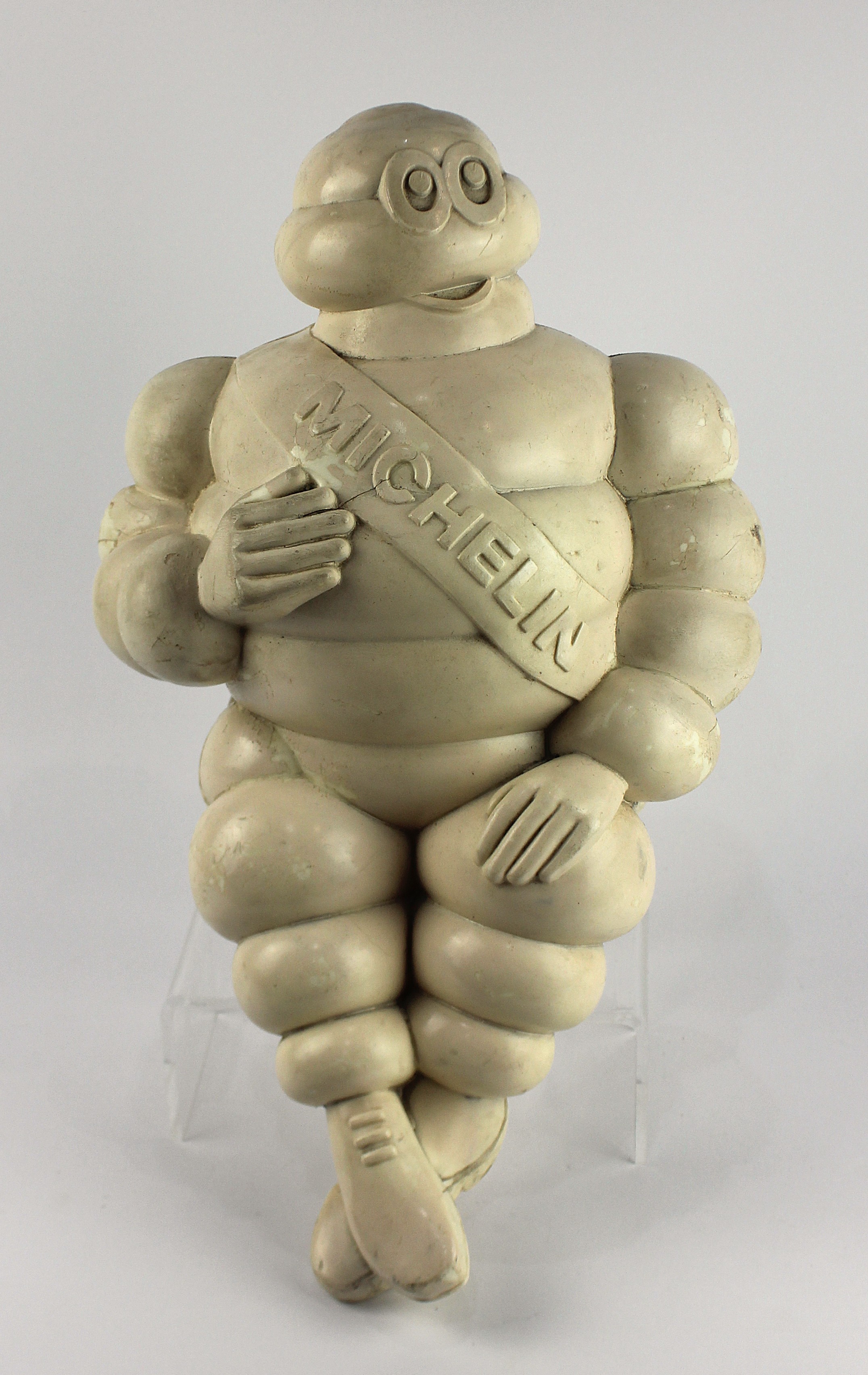 A vintage Mr. Bibendum Michelin Man advertising truck figure, of moulded plastic with cast metal bracket, 'Michelin Etc' dated 1966, height 47cm (AF)