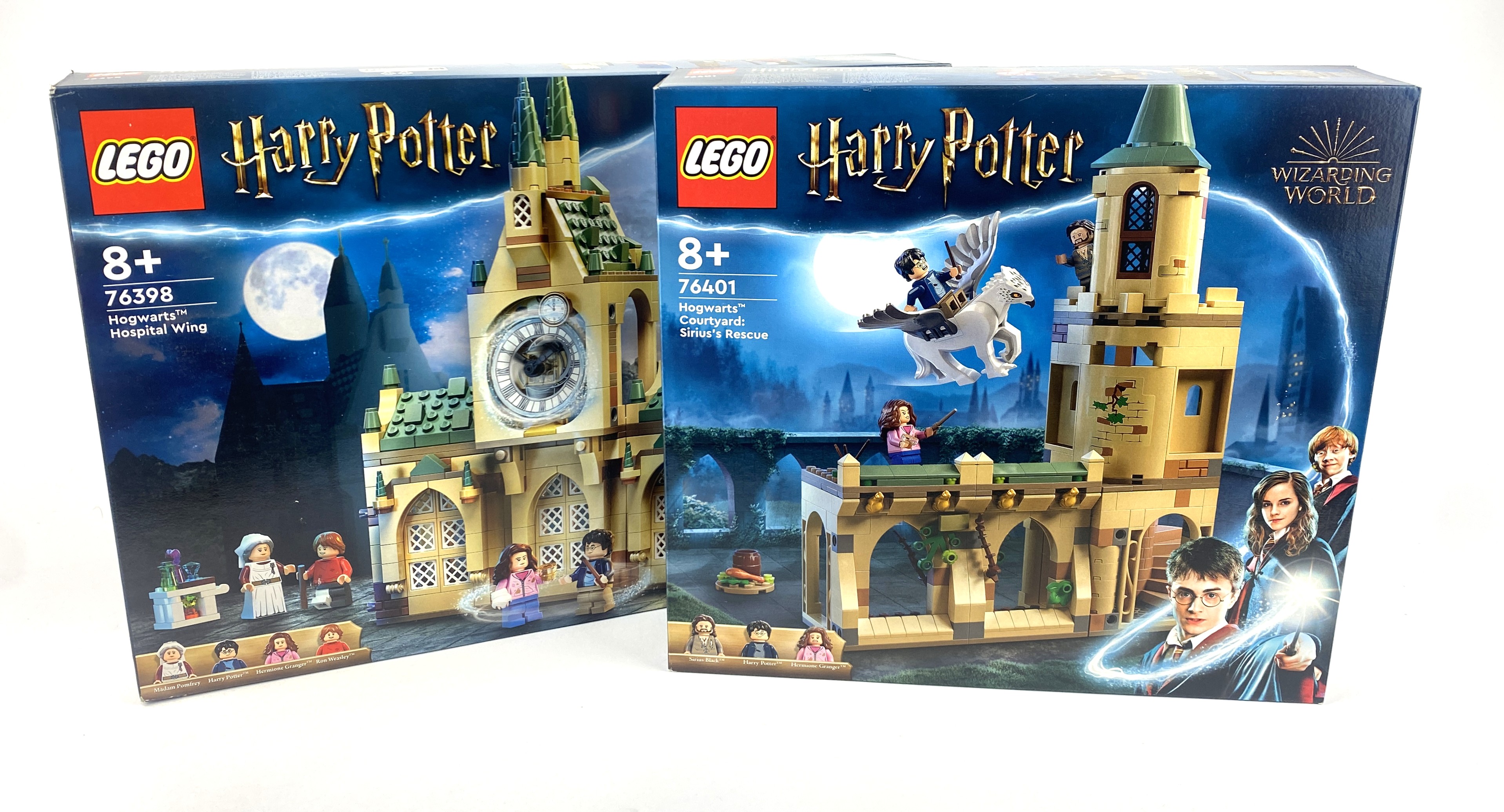 Two Lego Harry Potter boxed sets comprising 76401 Hogwarts Courtyard: Sirius's Rescue and 76398 Hogwarts Hospital Wing