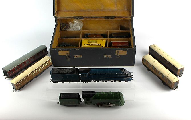 Model Railway: a collection of mostly Hornby 00 gauge tinplate model railway to include Sir Nigel Gresley locomotive,various coaches and rolling stock, and a selection of track, and other items (a/f)