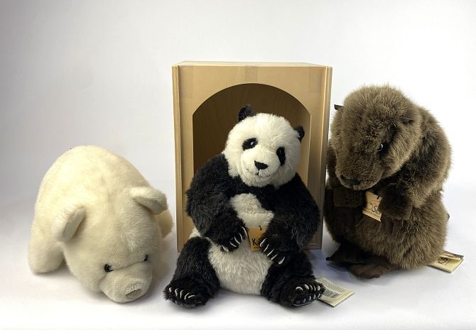 A Gund 'Snuffles' polar bear 35cm long, together with a Kosen panda in wooden crate box, and a Kosen beaver (3)