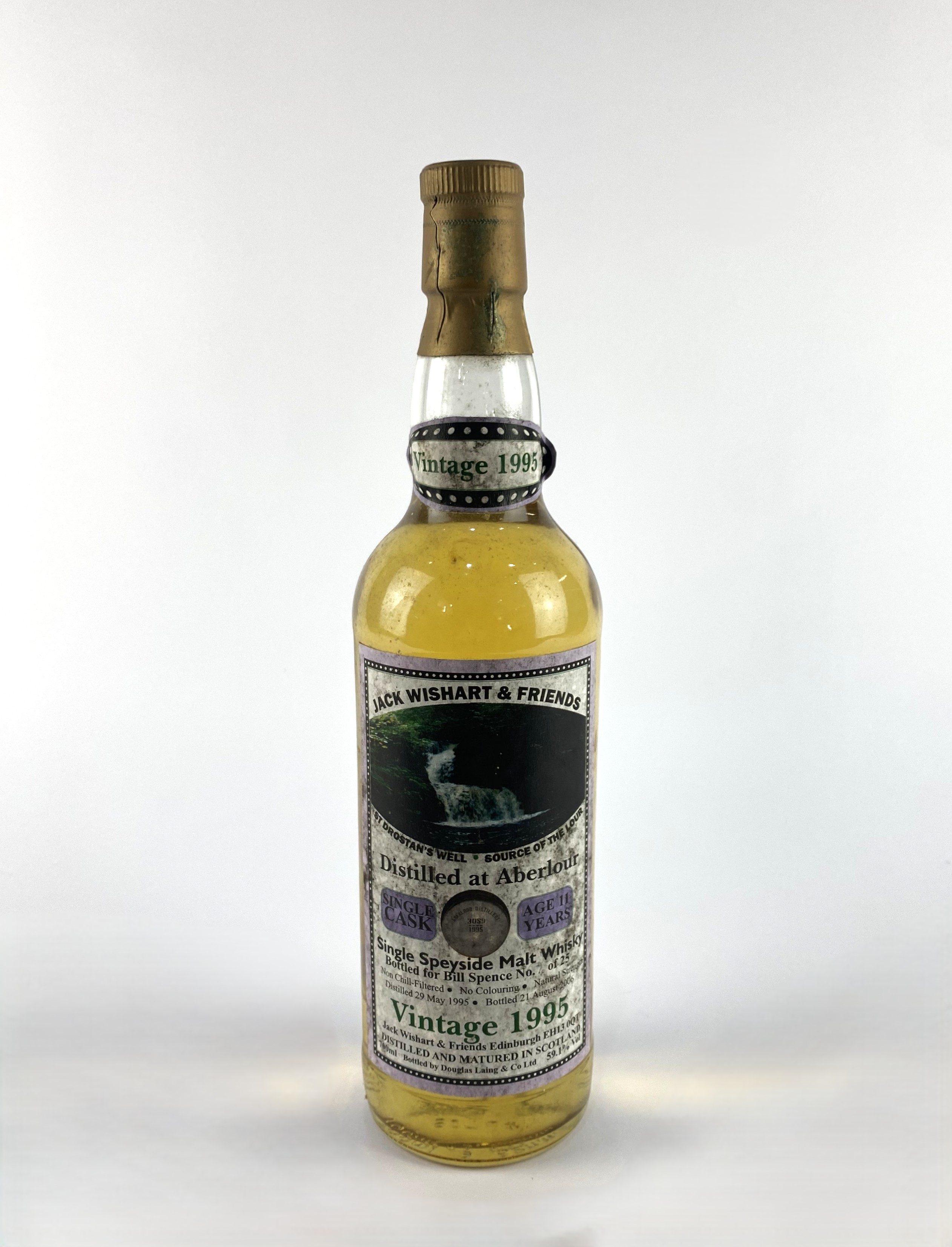Whisky: A bottle of 1995 Jack Wishart & Friends Single 11 Year Old Malt Whisky, Single Speyside Malt, Bottled for Bill Spence No. 7 of 25, 700ml (label AF)