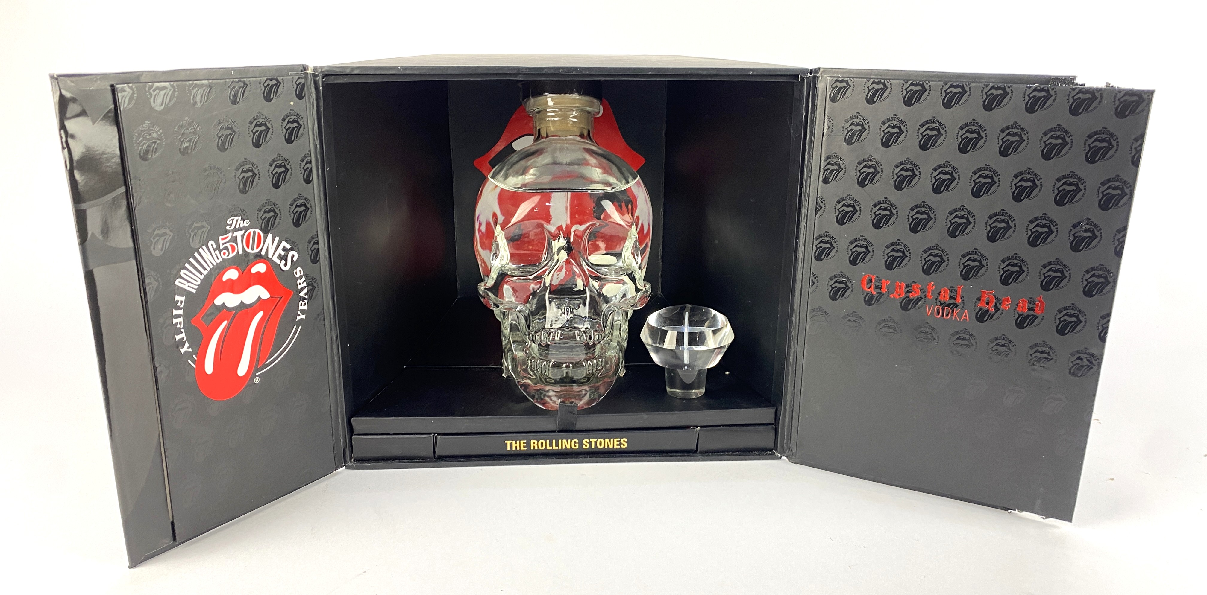 The Rolling Stones: A 50th Anniversary 'Crystal Head' bottle of vodka, by Bravado group, 2011, with original presentation packaging and card, box height 20cm