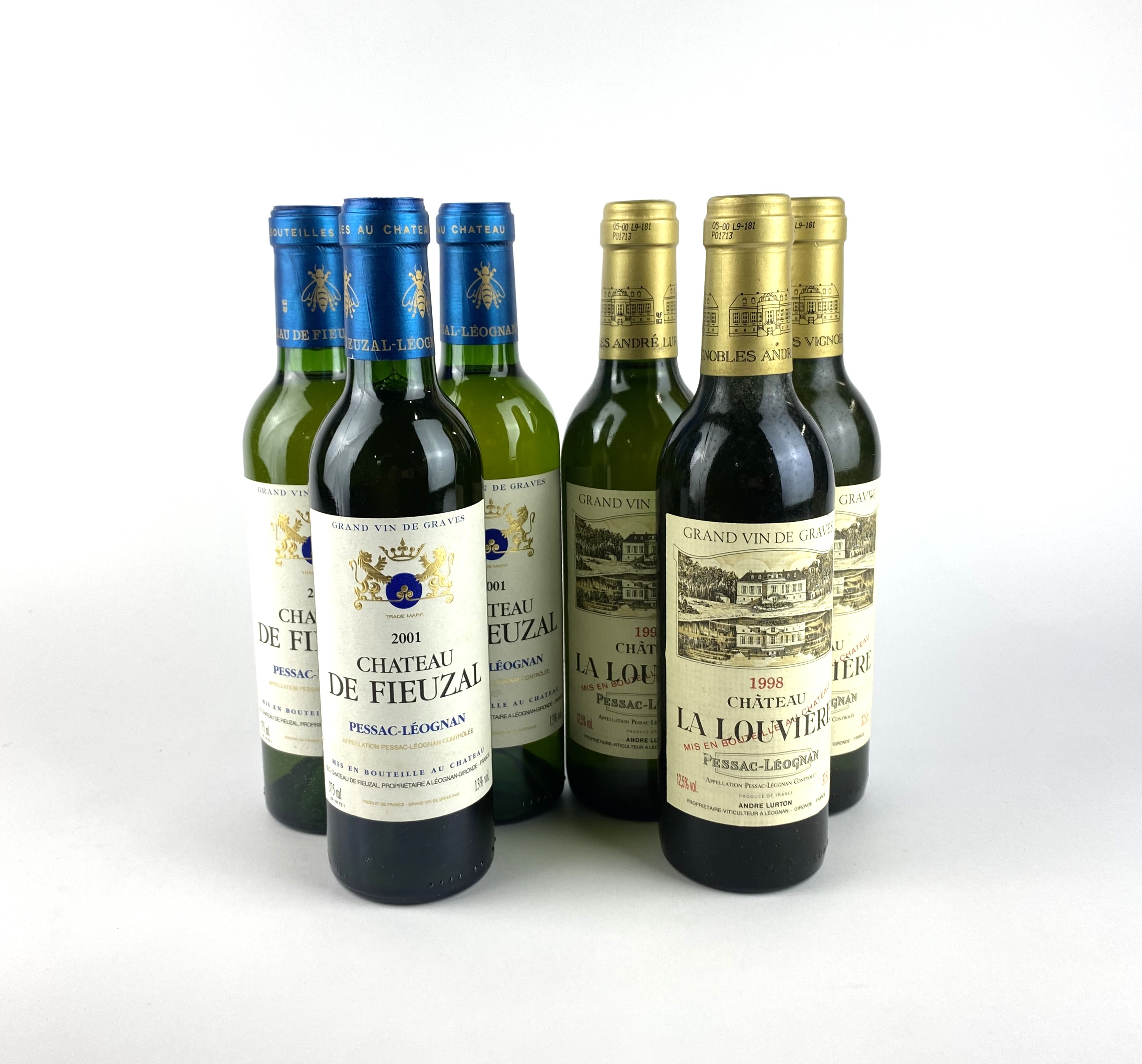 Fine Wine: A mixed collection of six vintage half bottles of white Bordeaux, including; three 1998 Chateau La Louviere and three 2001 Chateau de Fieuzal, Pessac-Leognan (6)