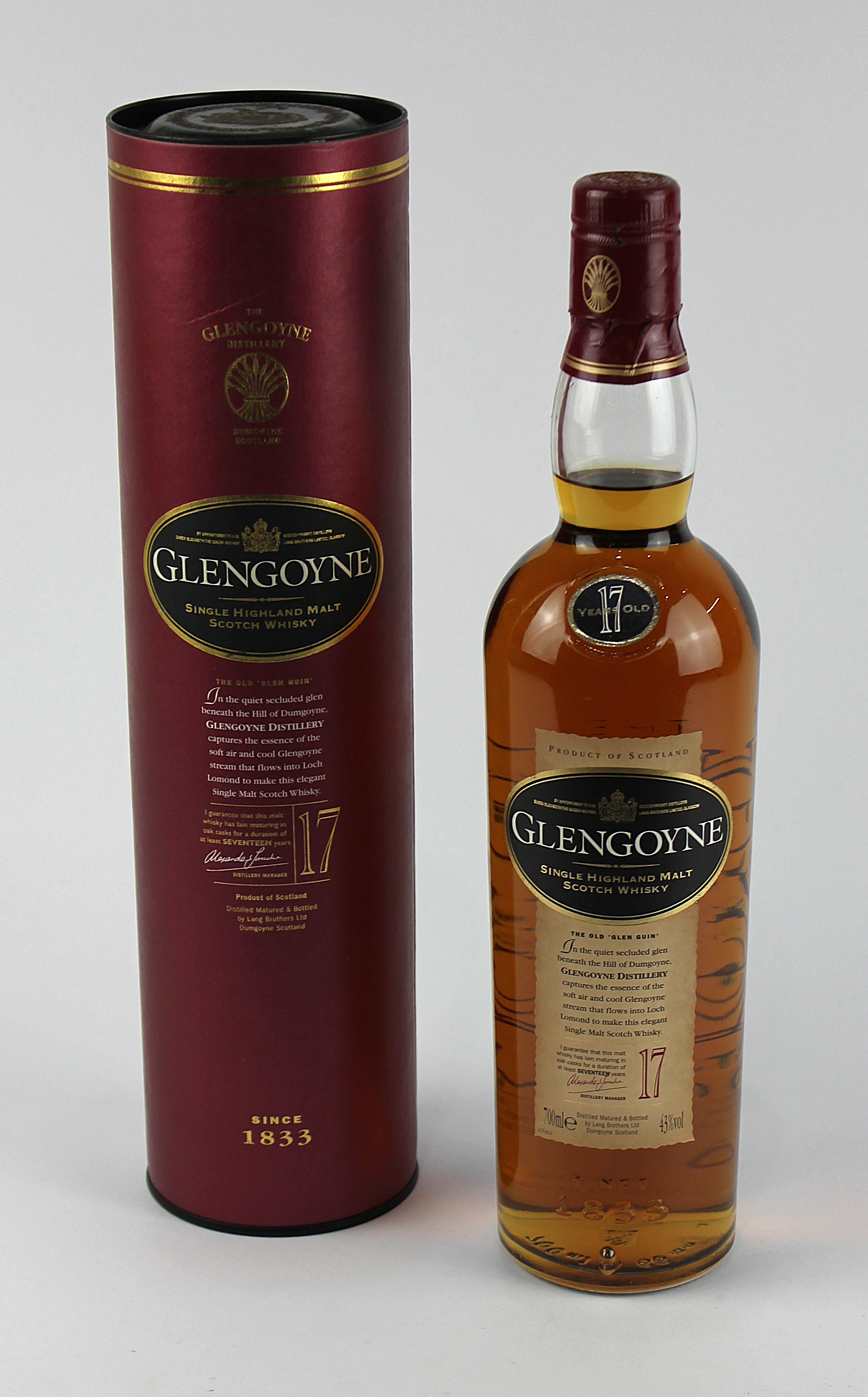 Whisky: A bottle of 17 Year Old Glengoyne Single Highland Malt Scotch Whisky, boxed, 70cl