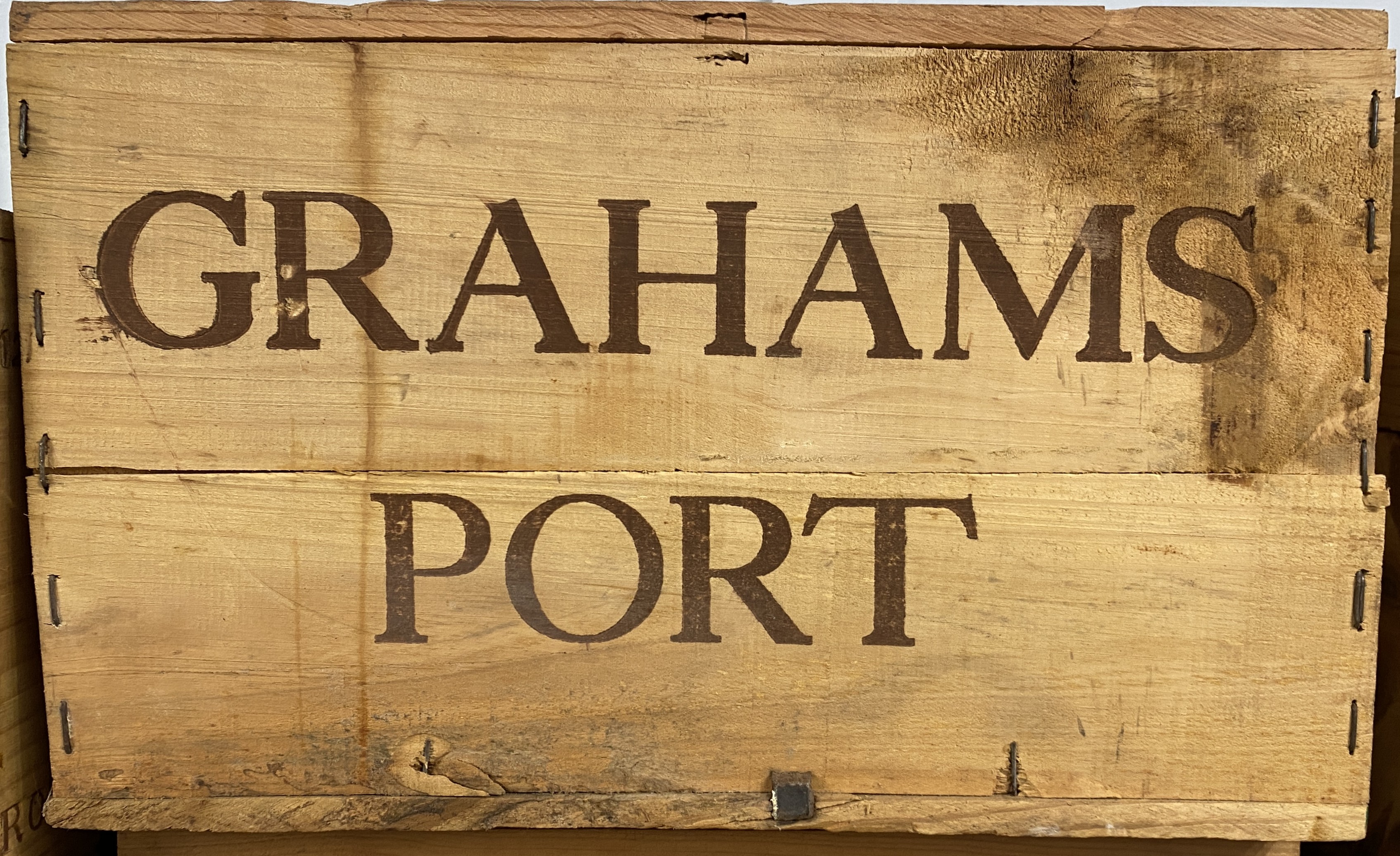 Port: an original wooden case of 12 bottles of Grahams Vintage Port, 1970.