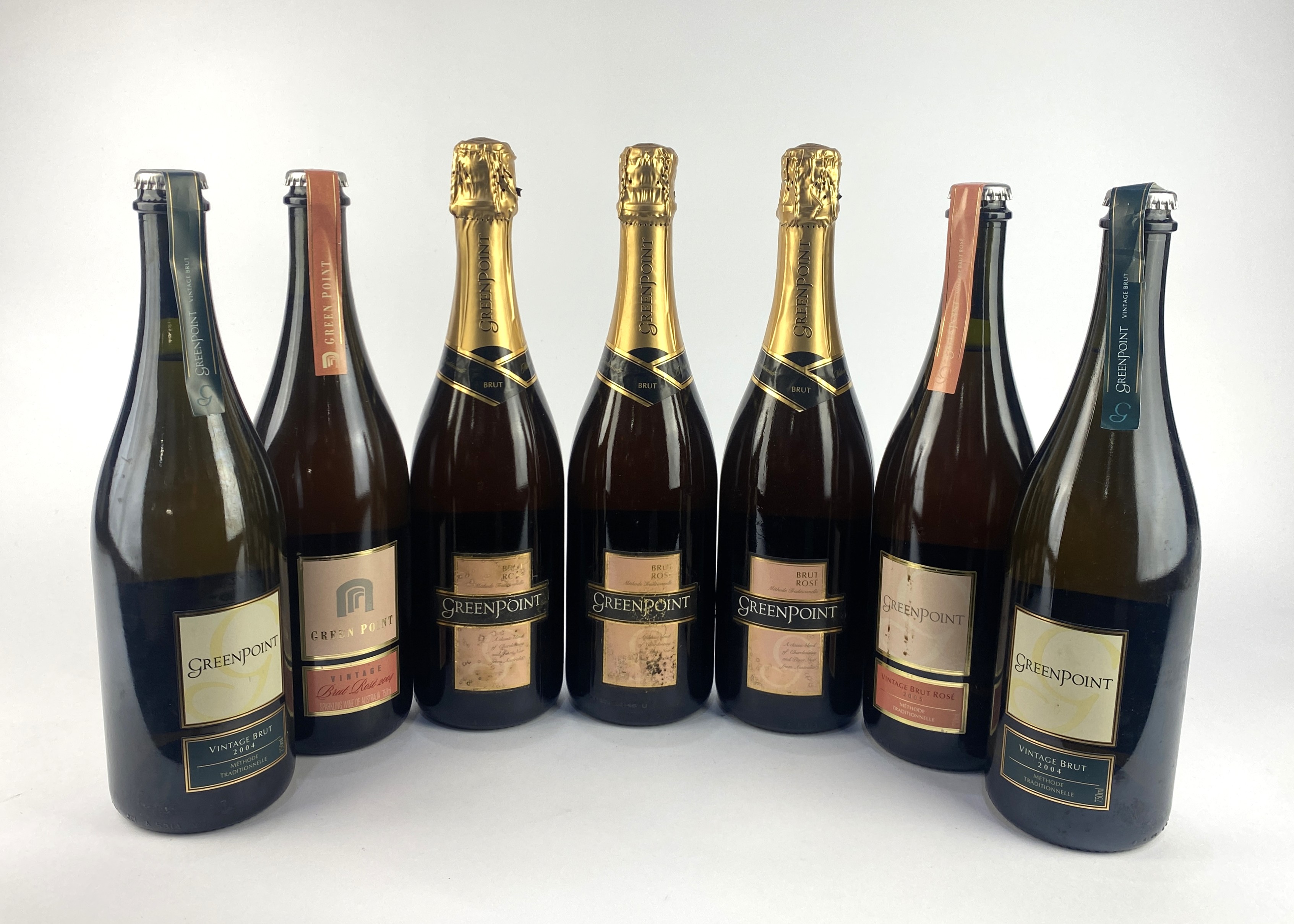 Fine Wine: Seven bottles of Green Point Brut sparkling wine, two bottles of 2004 Vintage (2), a single bottle of 2004 Vintage Brut Rose, a single bottle of 2005 Vintage Brut Rose, three bottles of Non-Vintage Brut Rose (3)
