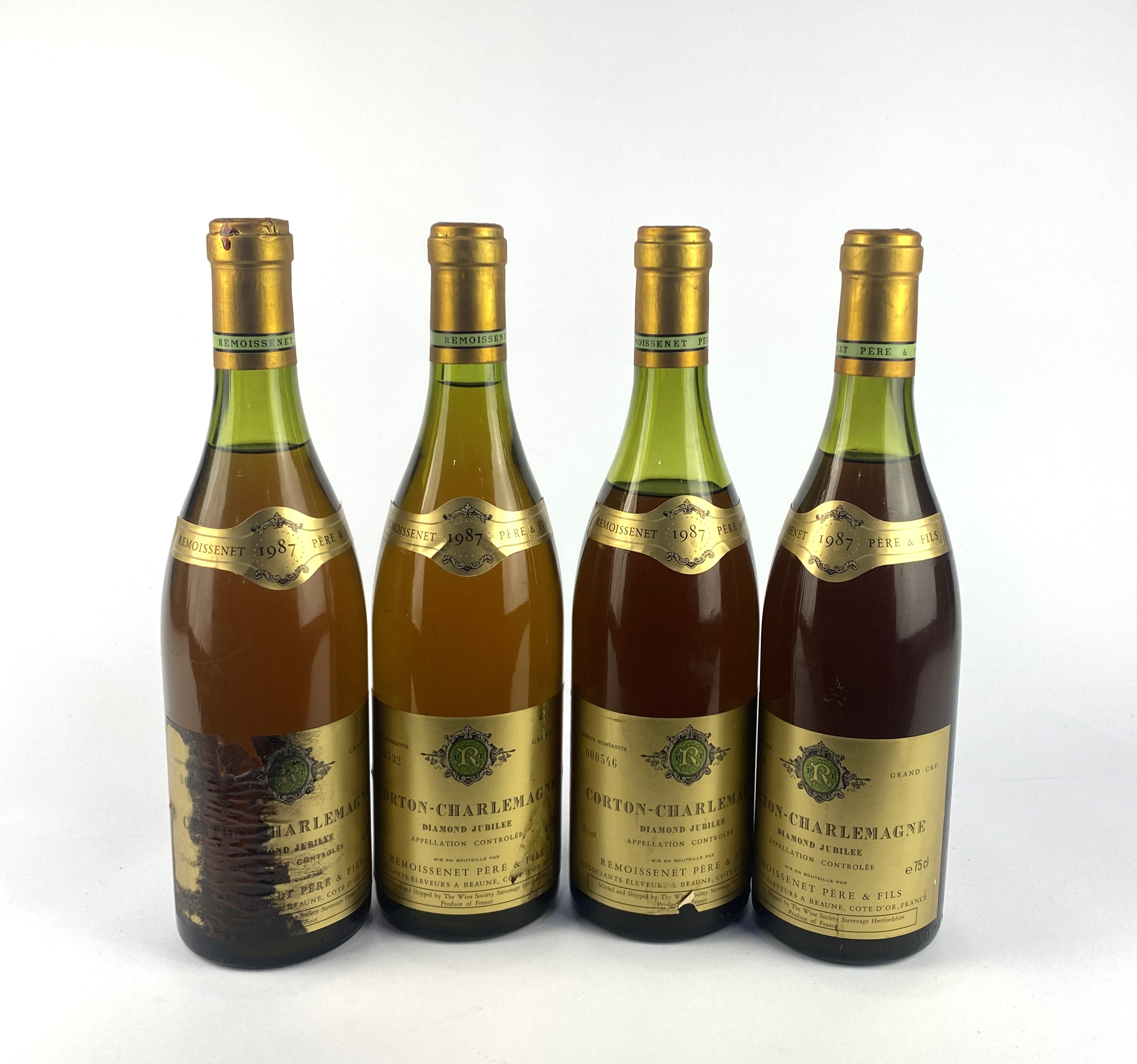 Fine Wine: Four bottles of 1987 Vintage Remoissenet Pere & Fils Corton-Charlemagne Grand Cru Diamond Jubilee White wine 750ml (4)