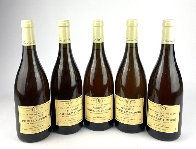 Fine Wine: Five bottles of Domaine Cordier Pere & Fils Grand Vin de Bourgogne Vieilles Vignes Pouilly-Fuisse wine, four bottles of 1998 Vintage 750ml (4), a single bottle of 1997 Vintage 750ml