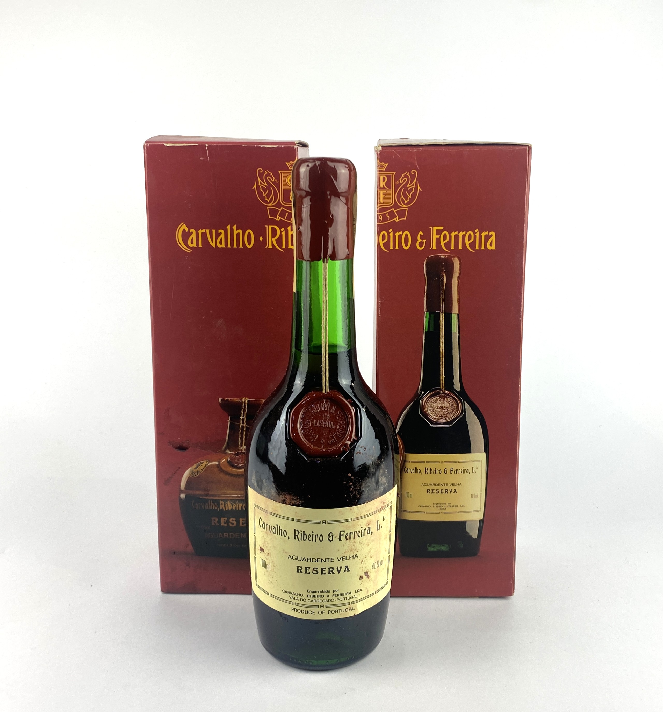 Liquor: Two bottles of Carvalho, Ribeiro & Ferreira Aguardente Velha Reserva 700ml with branded cardboard boxes (2)