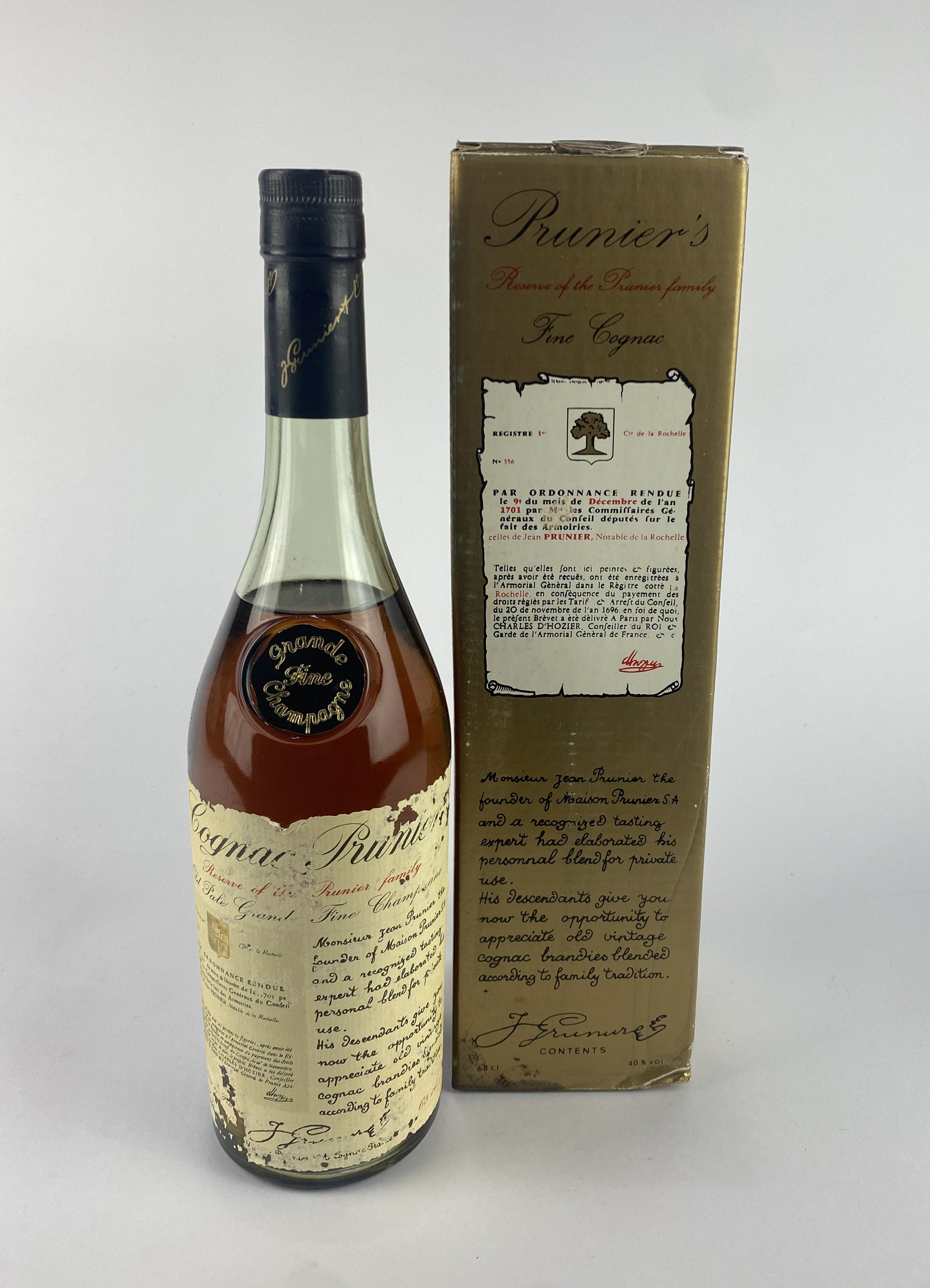 Liquor: A single bottle of Vintage Prunier Cognac Grande Fine Champagne Brandy 68cl