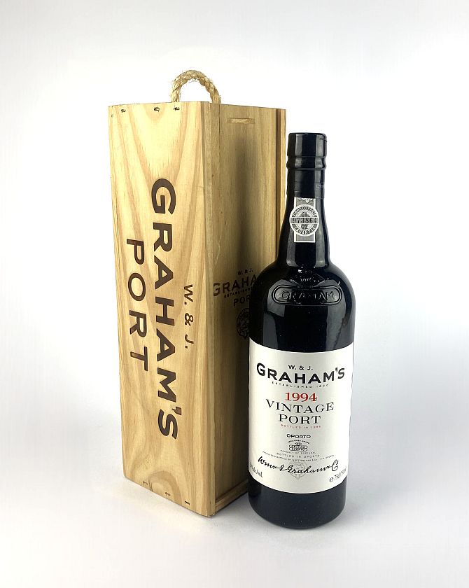 A vintage bottle of 1994 Graham's port, with wooden case, 75cl