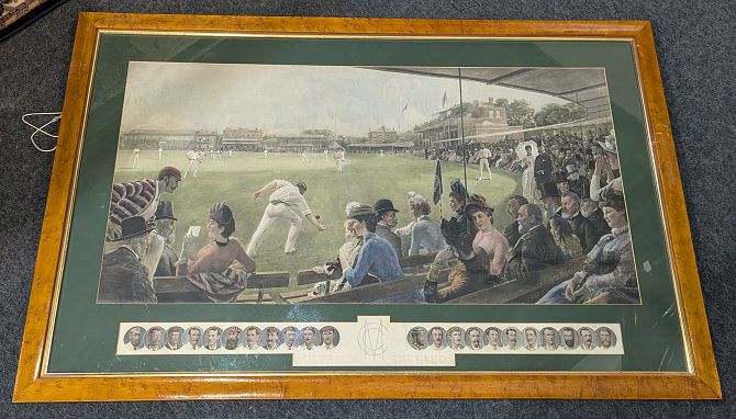George Hamilton Barrable (fl 1873-1887) after Sir Robert Ponsonby Staples (1853-1943), 'The Ideal Cricket Match', lithograph, 52cm by 102cm