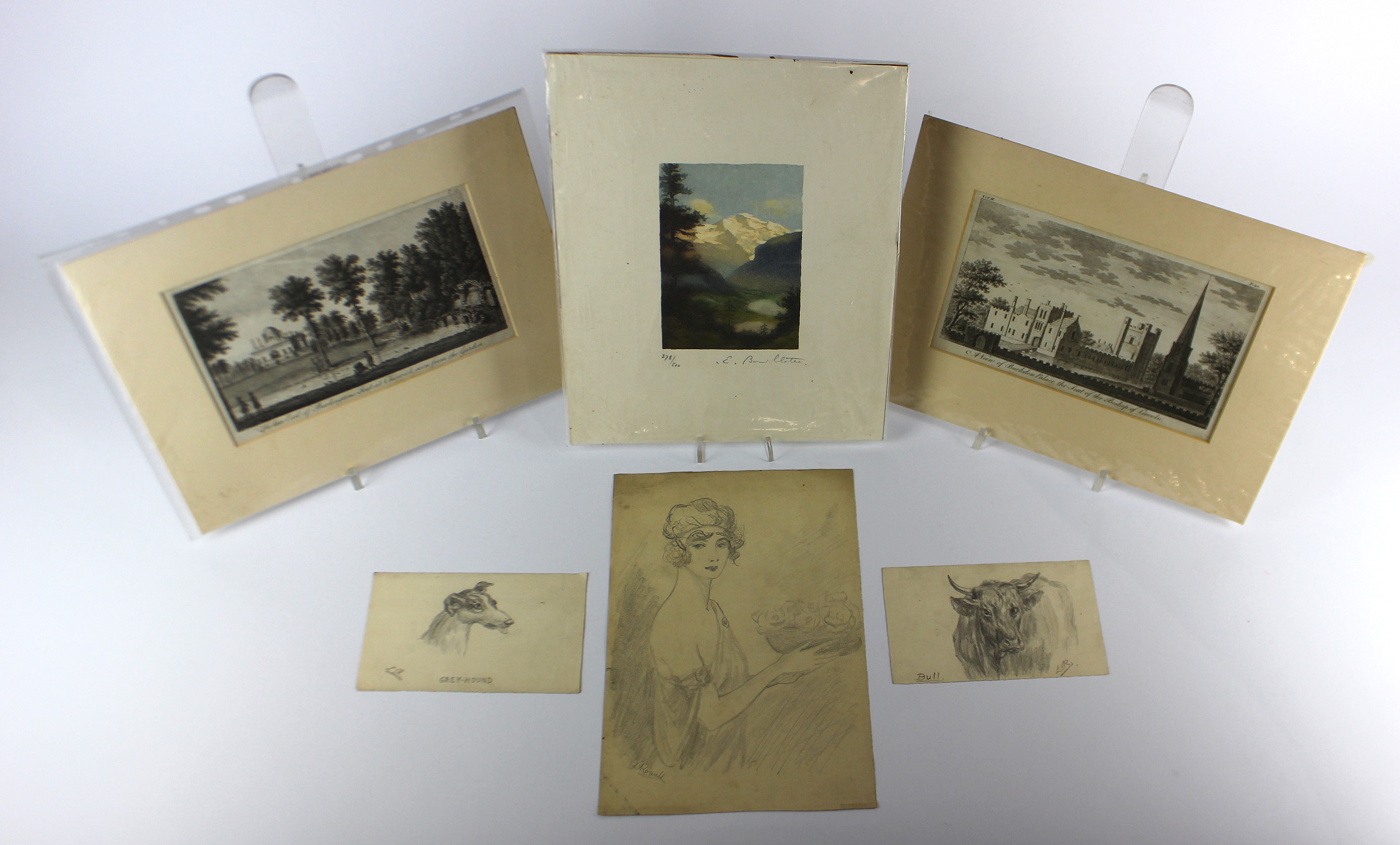 A large and interesting collection of 18th century and later engravings, prints and bookplates, together with a small assortment of some mostly early 20th century watercolour sketches etc