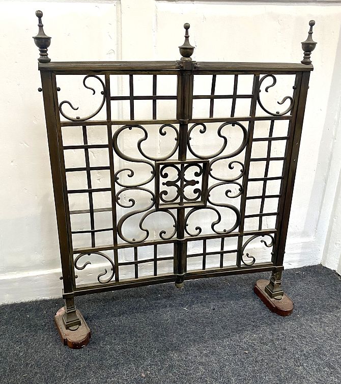 A good quality Edwardian brass firescreen, with pierced openwork decoration, 62cm wide by 70cm high.