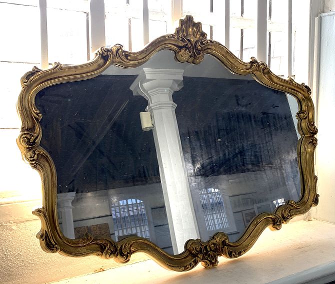 An ornate period style gilt framed wall mirror, 20th century, 105cm wide by 80cm high.