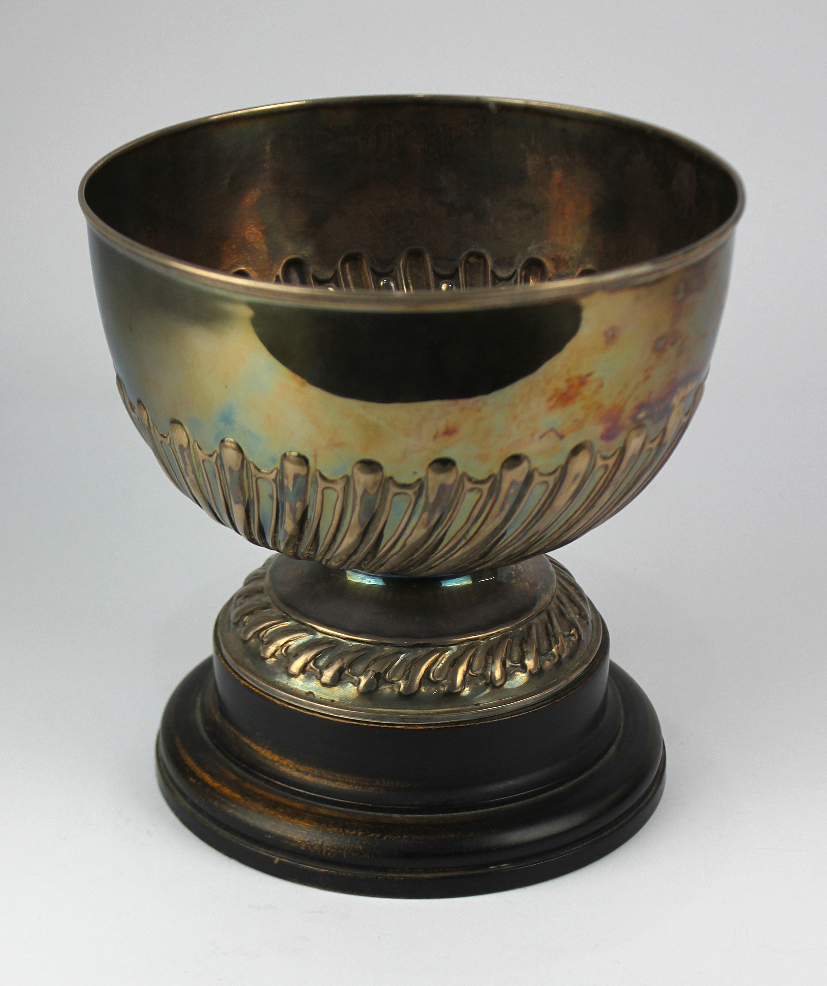 An Edwardian silver pedestal bowl, by William Hutton & Sons, London, 1903, of circular form with demi gadrooned bowl and foot, with turned ebonised base, diameter 18.5cm, 14.7oz