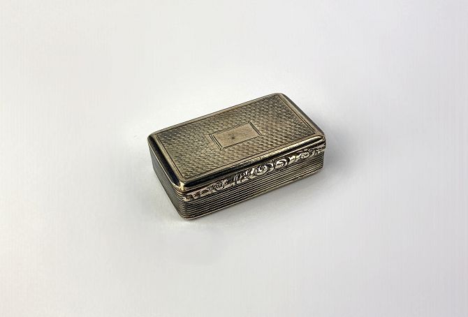 A William IV silver rectangular vinaigrette, by Taylor & Perry, Birmingham, 1832, with engine turned decoration, gilt interior, lacking grille, width 4.7cm, 0.8oz (AF)