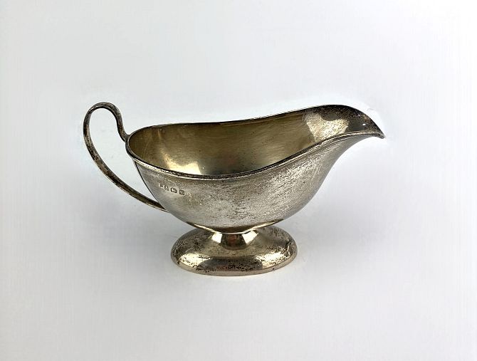 A George V silver sauce boat, Birmingham, 1923, height 7.8cm, 3.7oz (AF)