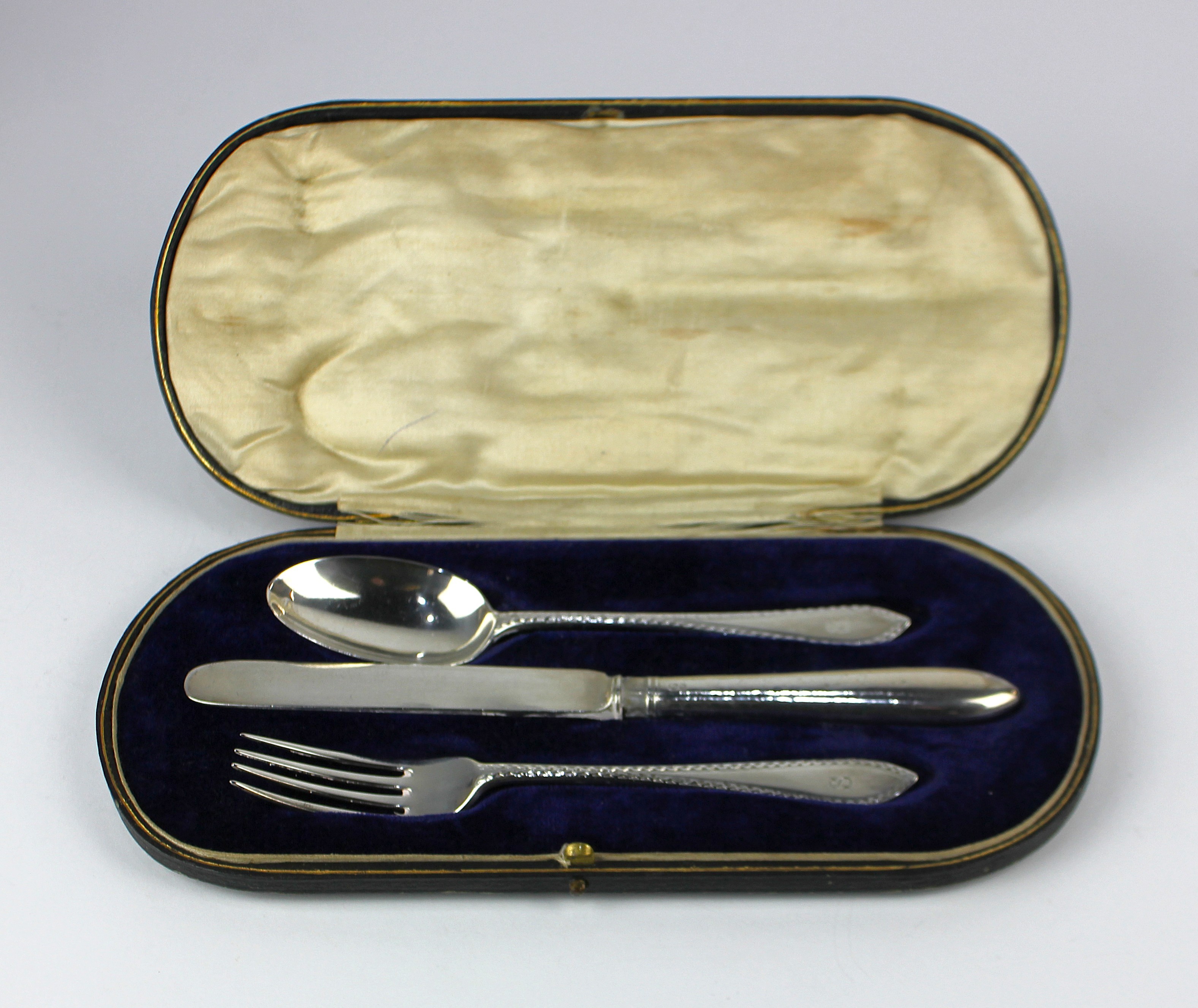 A George V silver three piece Christening cutlery set, by Mappin & Webb, Sheffield, 1926, comprising knife, fork and spoon, within fitted case, knife length 20cm, gross total weight 3.5oz