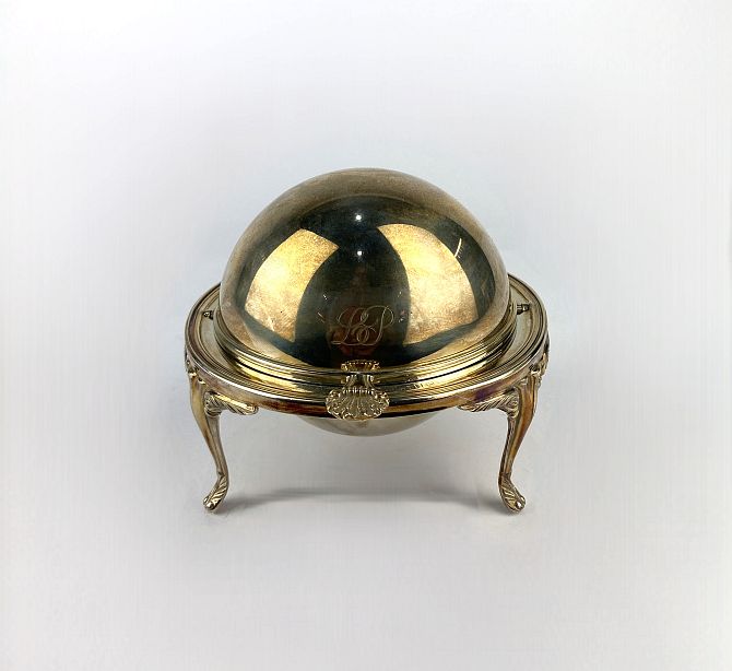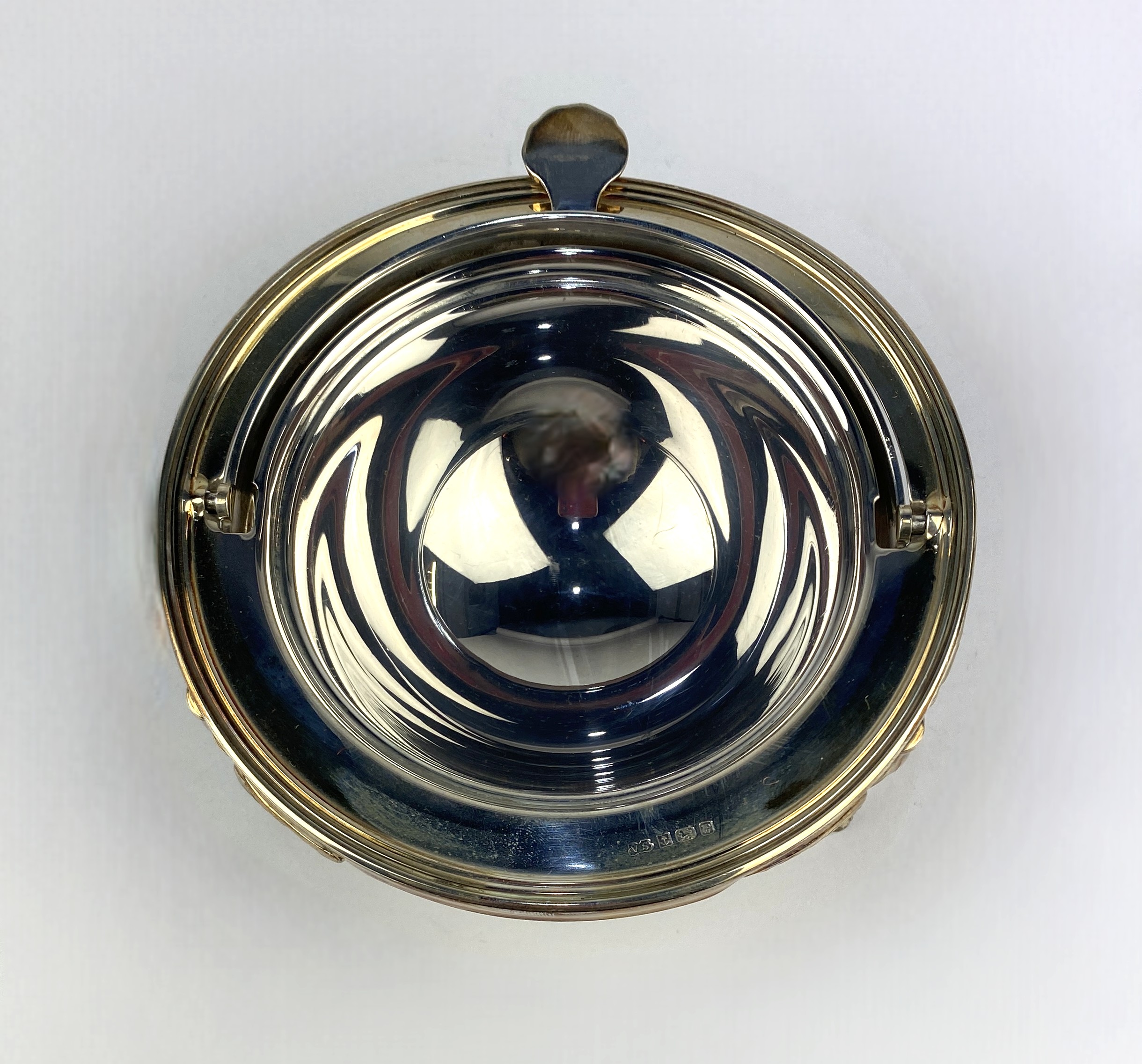 A silver serving dish of revolving domed circular form raised on cast elongated legs, Birmingham 1996, 8.30 ozs.