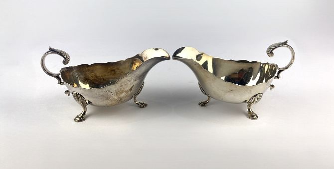 A matched pair of Edward VII silver sauce boats, maker Edward Barnard & Sons Ltd., London 1898, 1899, 7.6oz