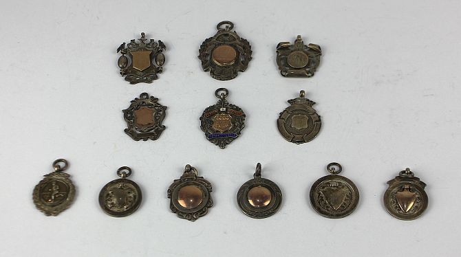 A collection of twelve early 20th century silver, silver gilt and enamel school / sports medals, all presentation engraved, gross weight 3.8oz