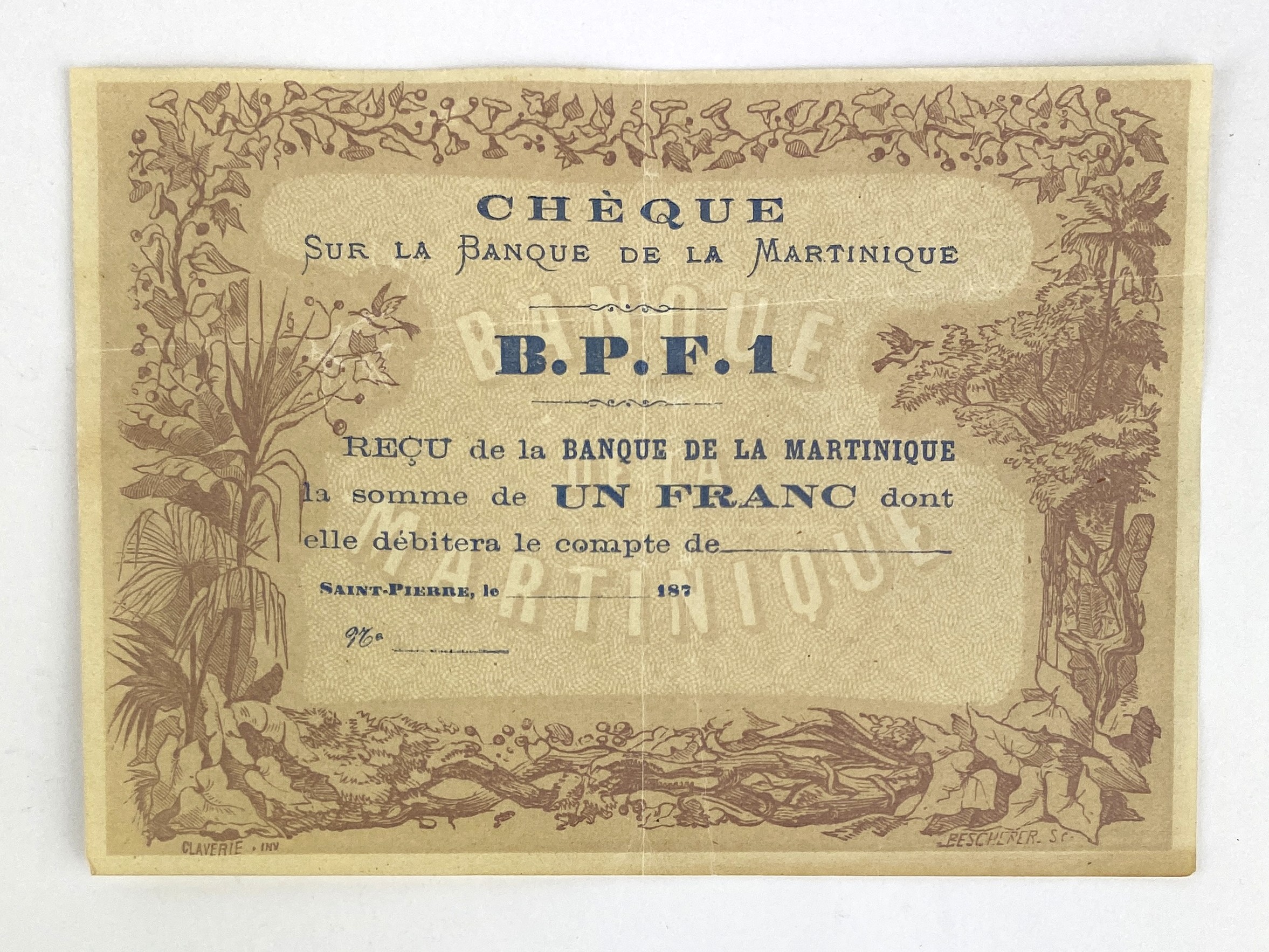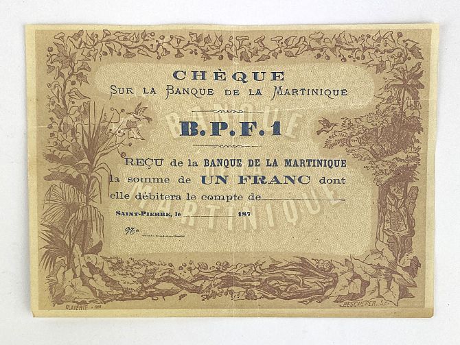 A Banque De La Martinique paper receipt, not filled out, numbered 187