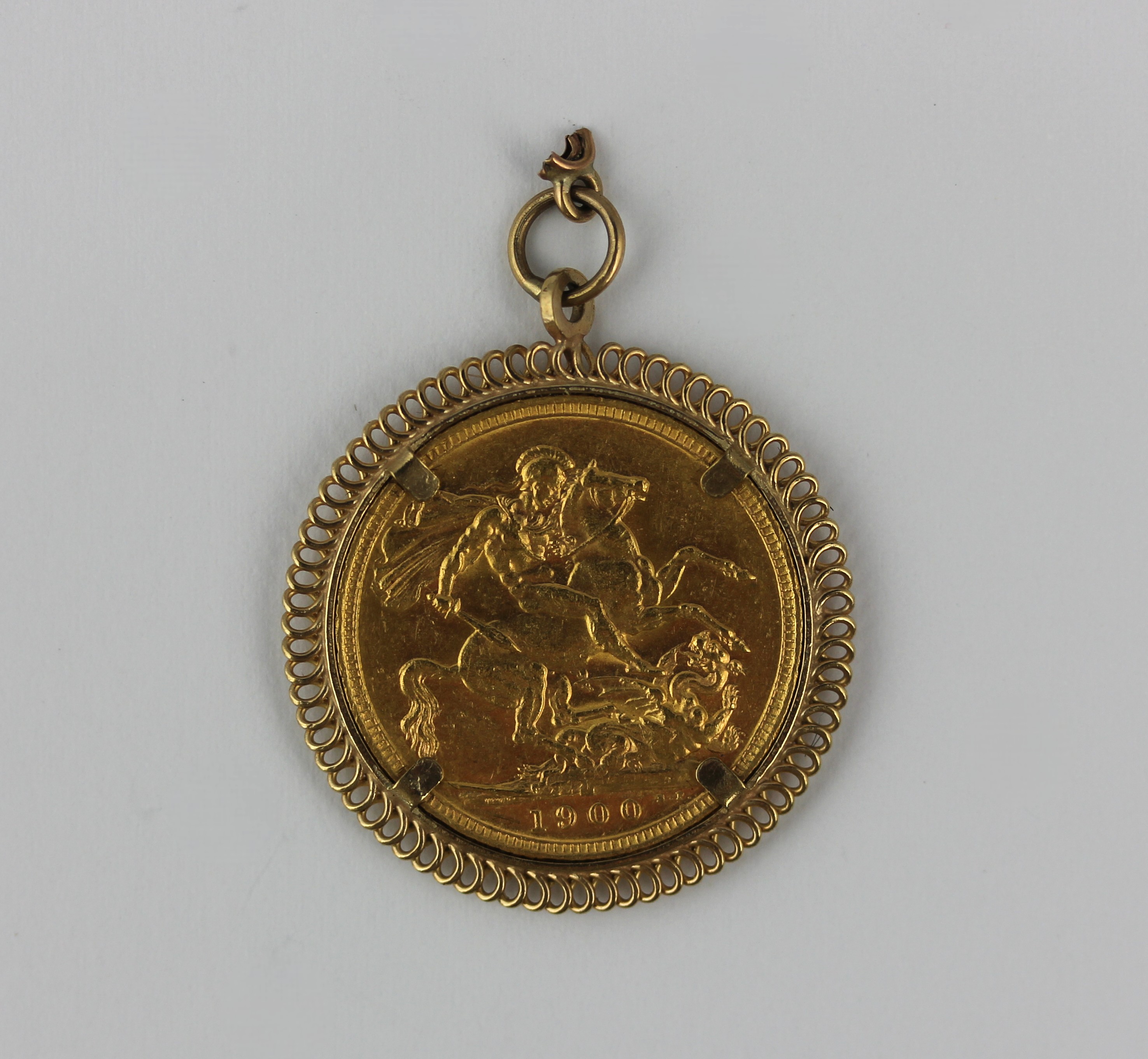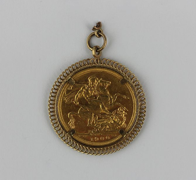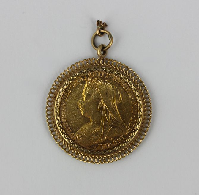 A Victorian old head sovereign 1900 in an unmarked pendant mount