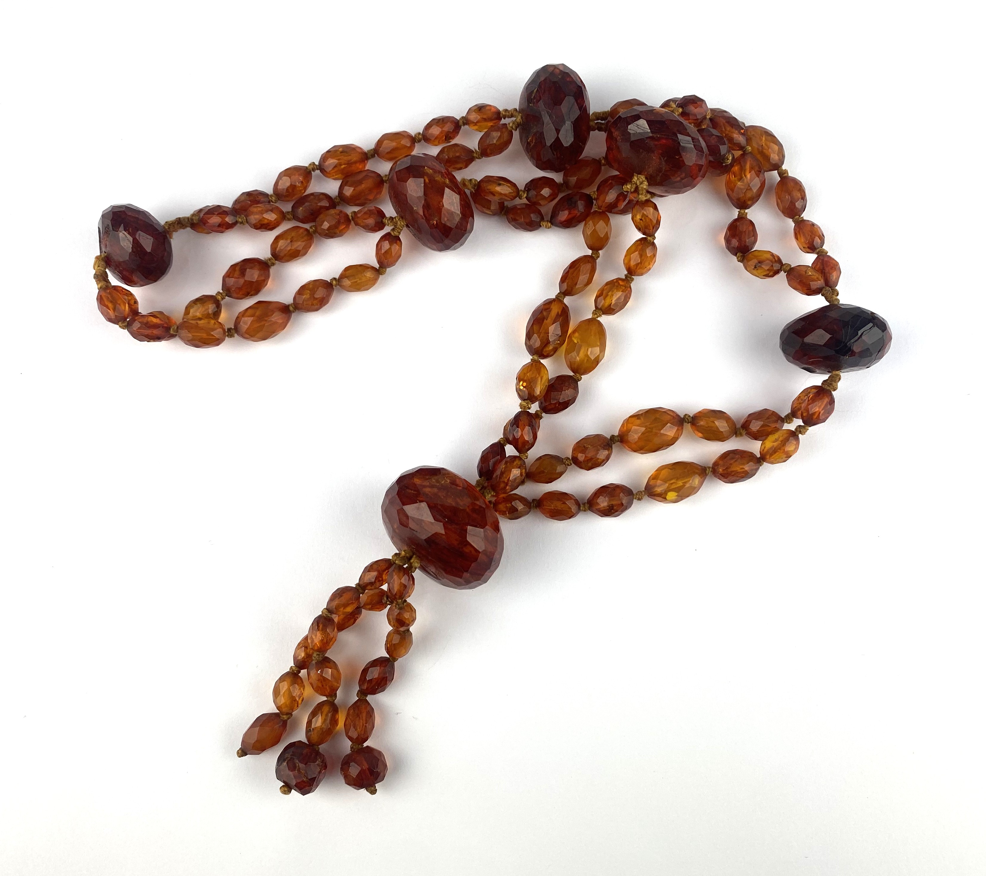 A two row necklace of reconstituted oval translucent amber beads (a/f)