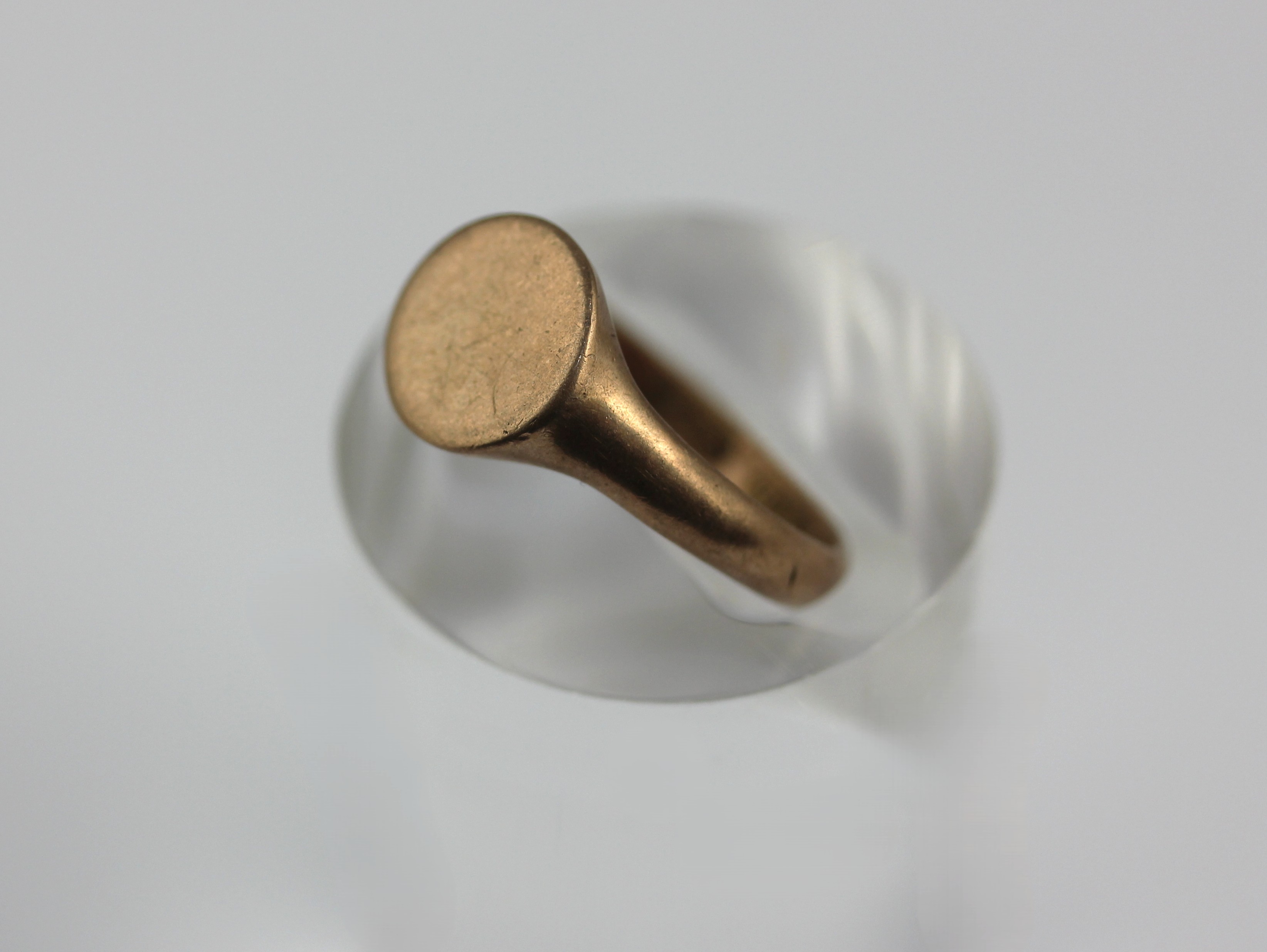 A 9ct gold signet ring, unengraved, Birmingham 1911, size M, weight 3.2 gms