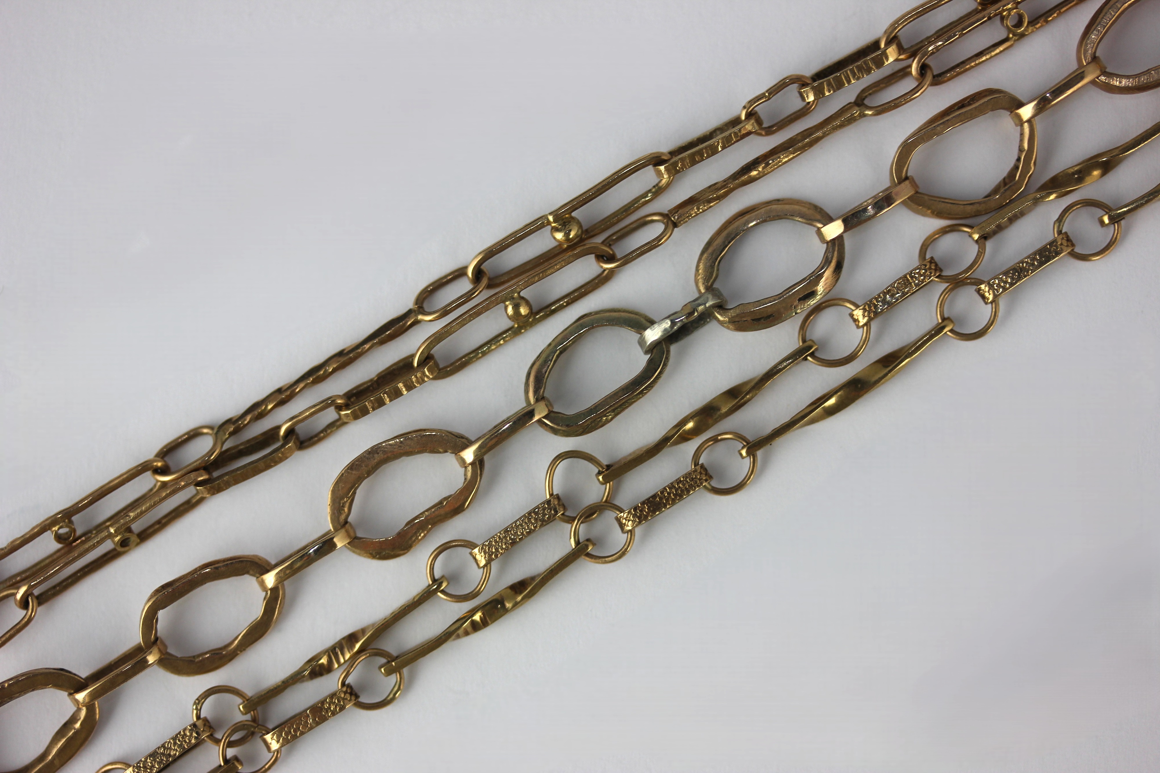 Two unmarked gold neck chains and an unmarked gold bracelet (tests as approximately 9ct gold) combined weight 43g