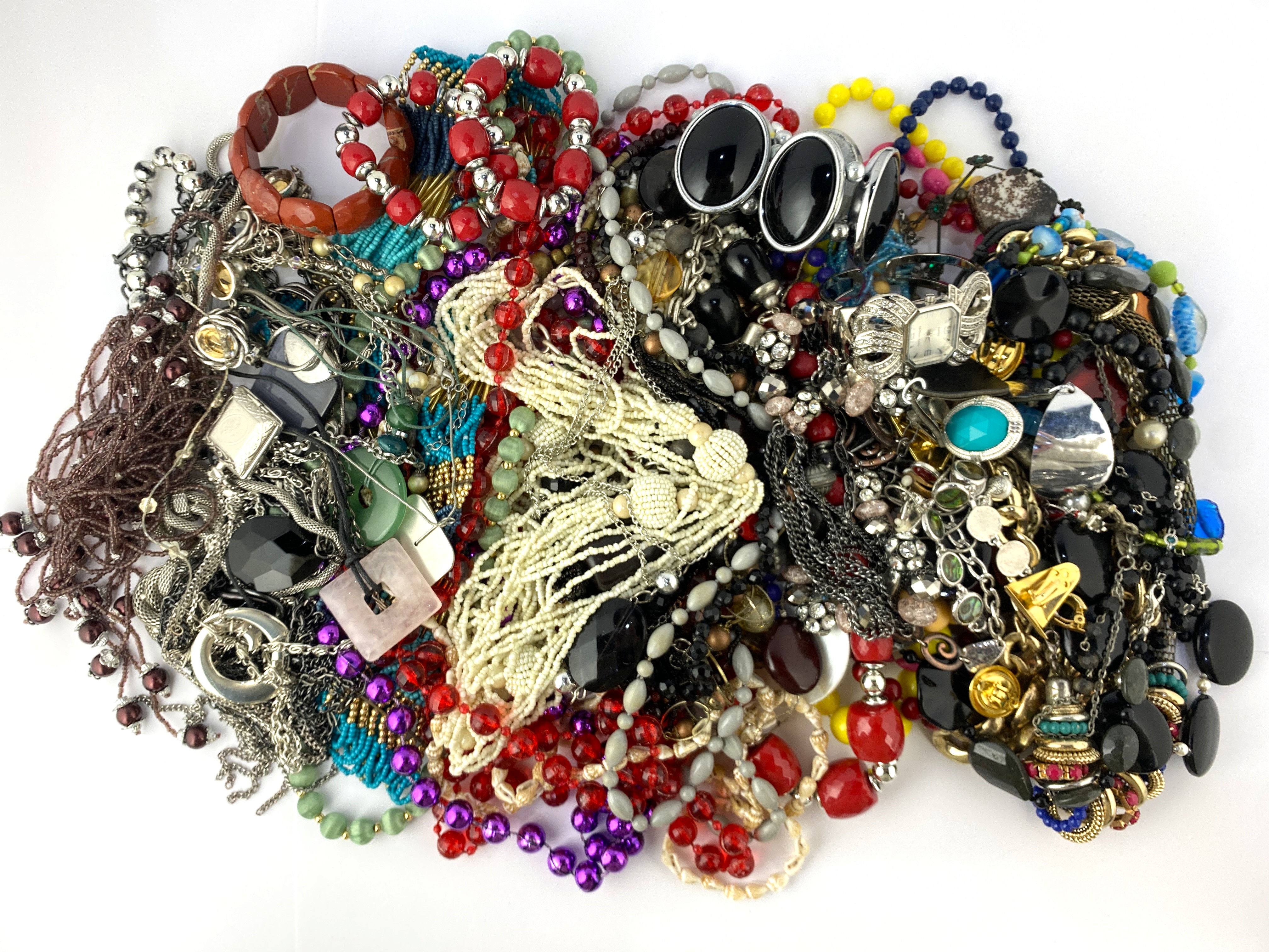 A quantity of costume jewellery of necklaces bangle watch and bracelets