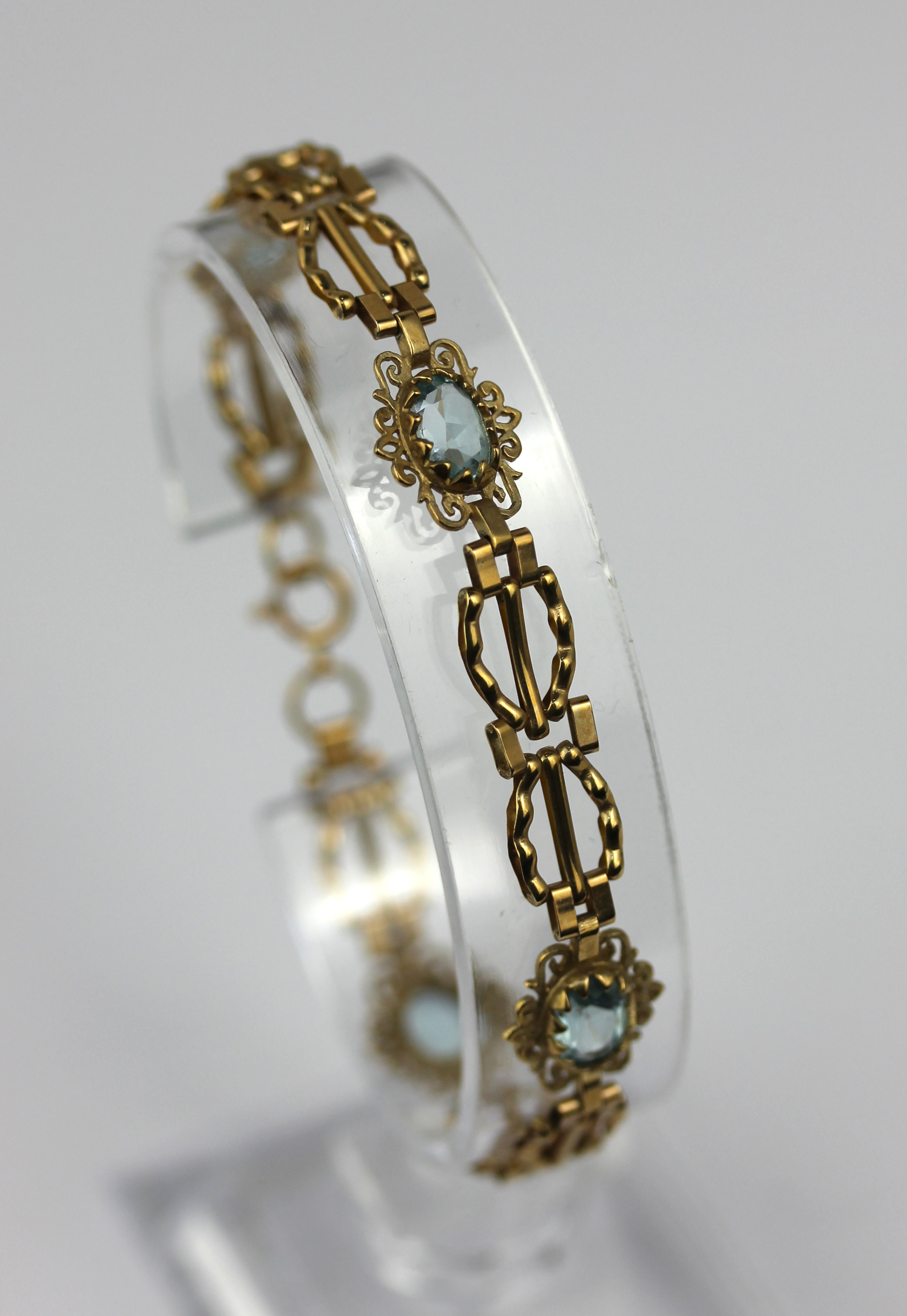 A 9ct gold and blue topaz link bracelet length 17.7cm gross weight 5.6g