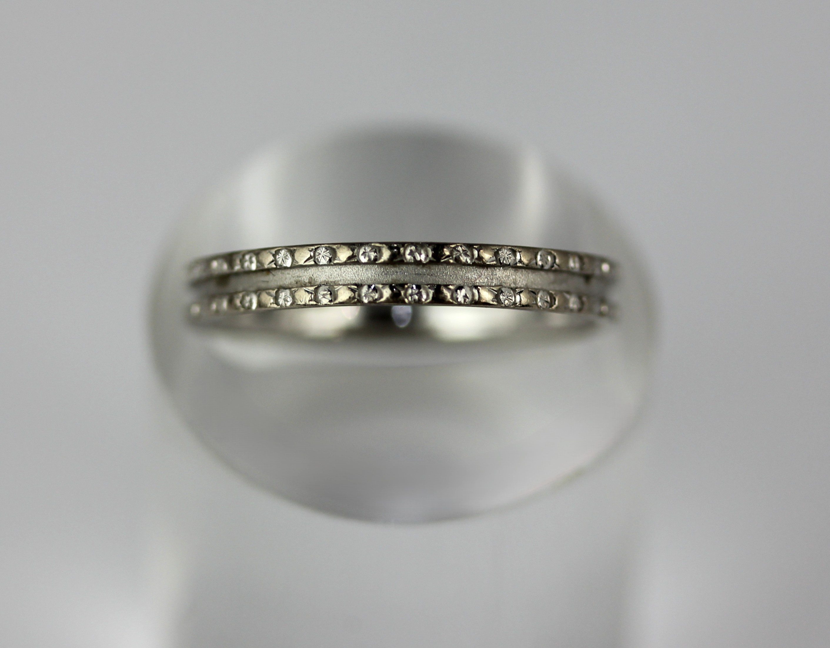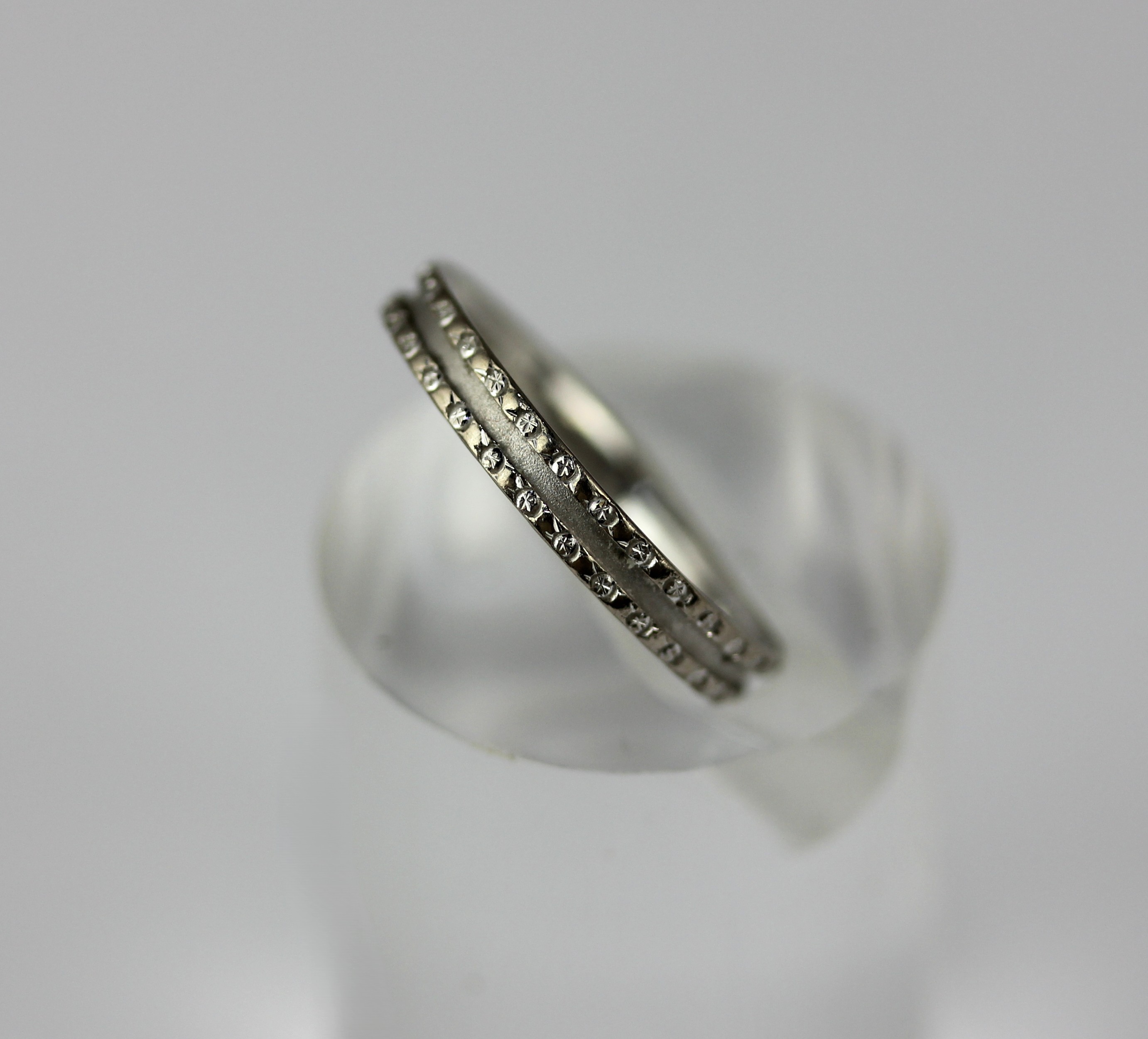 An 18ct white gold wedding ring having decorated sides size p and 1/2 weight 2.7g