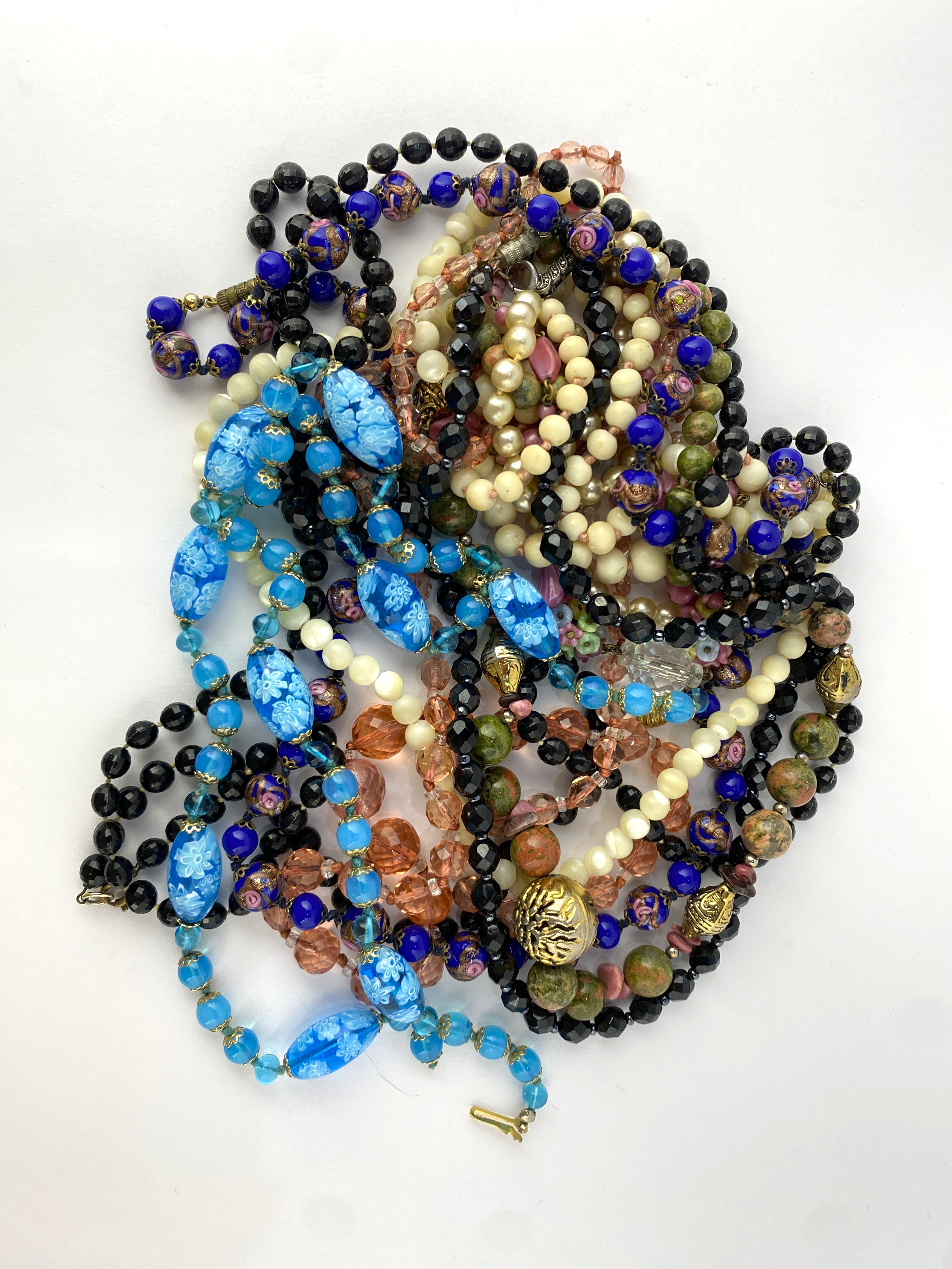 A group of ten necklaces to include two vary coloured paste necklaces and an imitation pearl necklace(10)