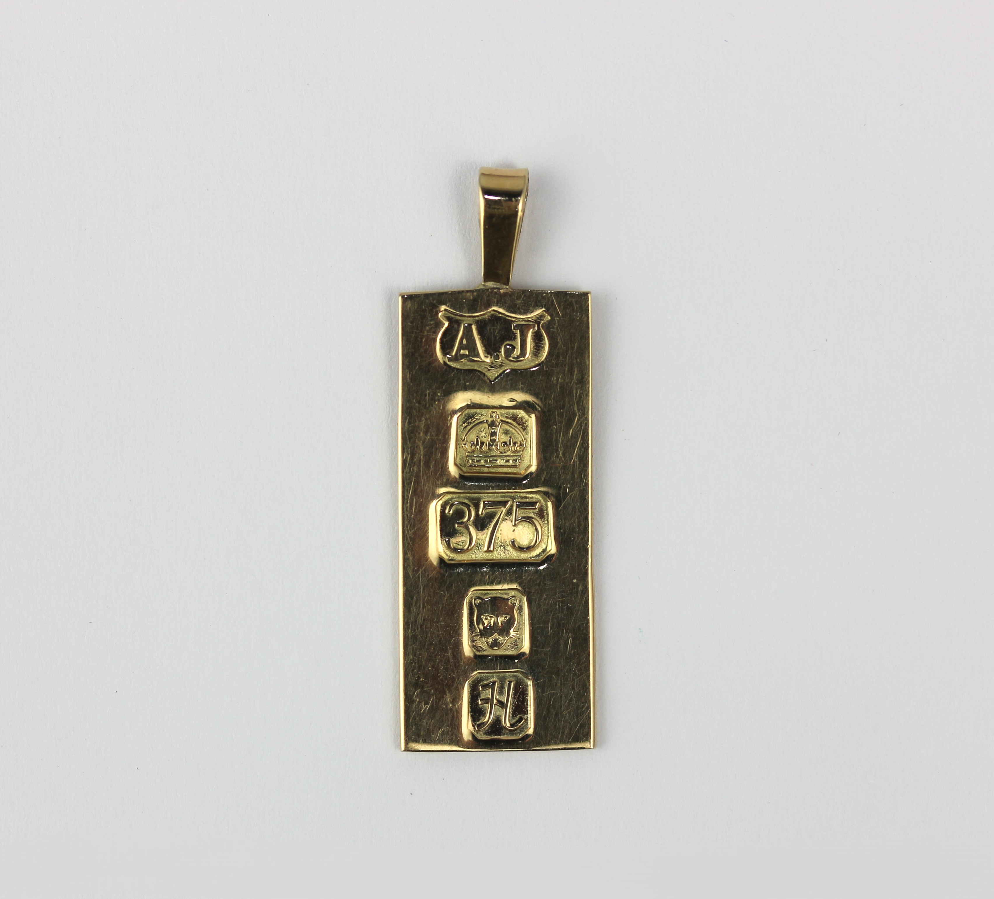 A 9ct gold rectangular ingot shaped pendant London 1982 weight 4g