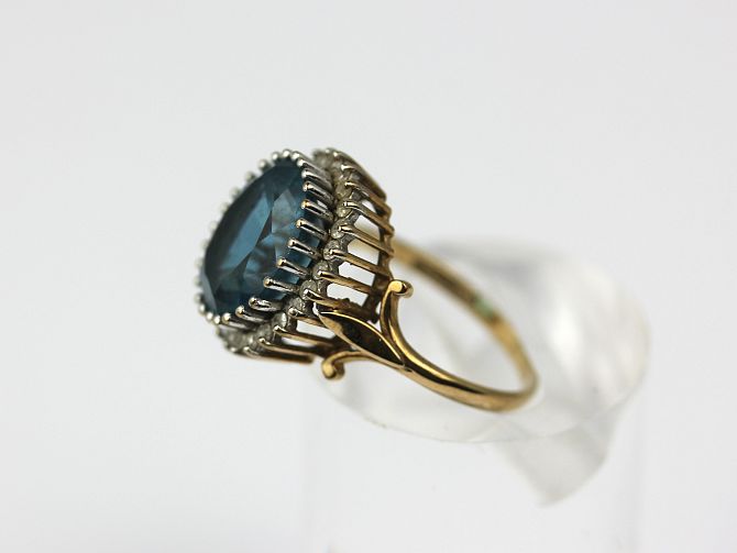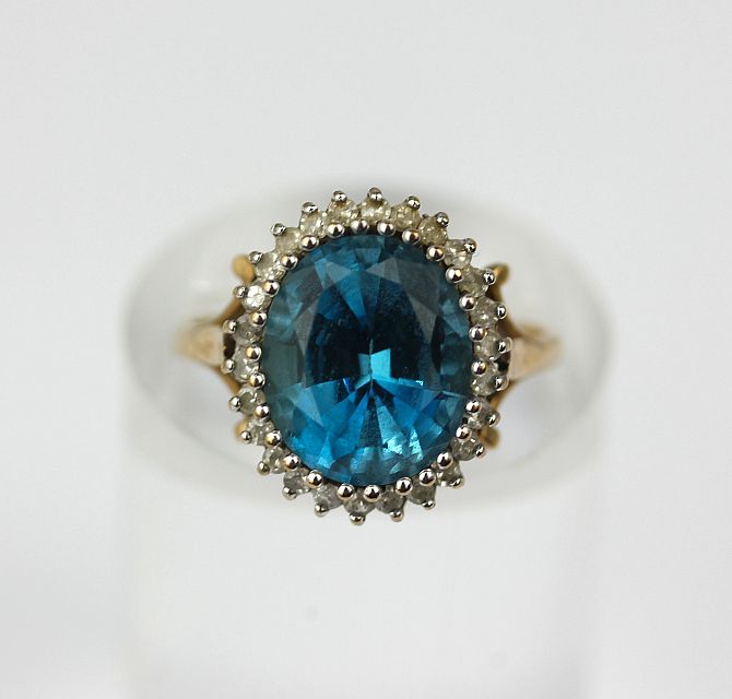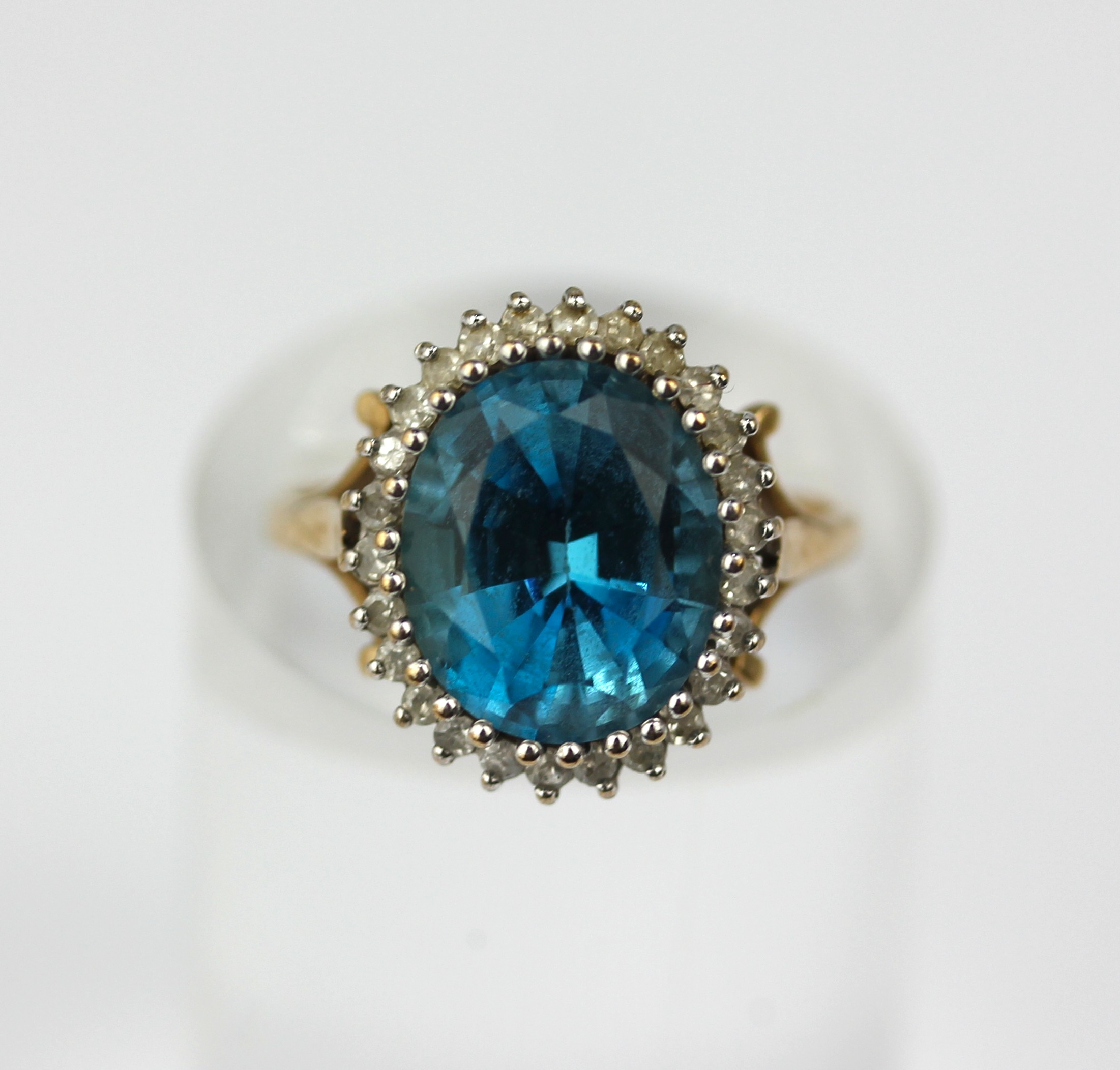 A 9ct gold blue topaz and diamond oval cluster ring size O gross weight 4.2g
