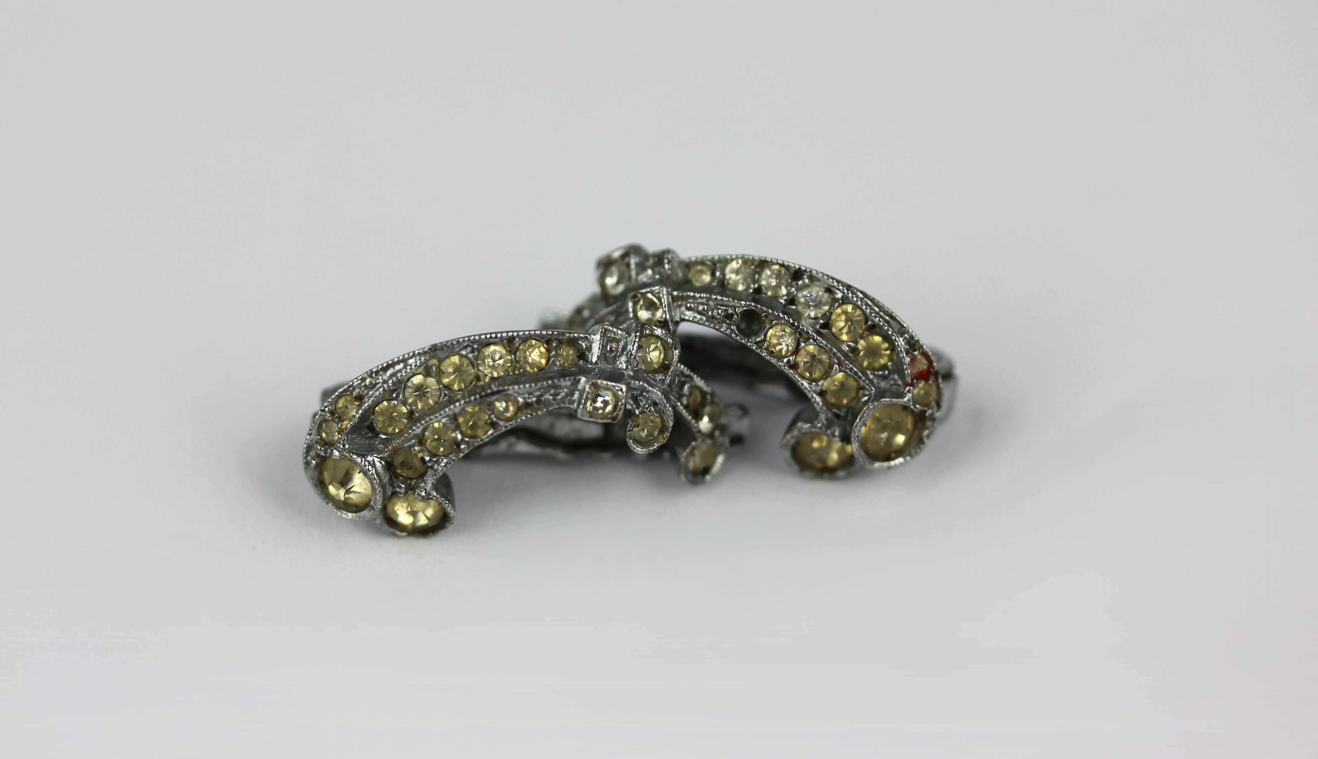 A pair of coloured paste earclips detailed '935'