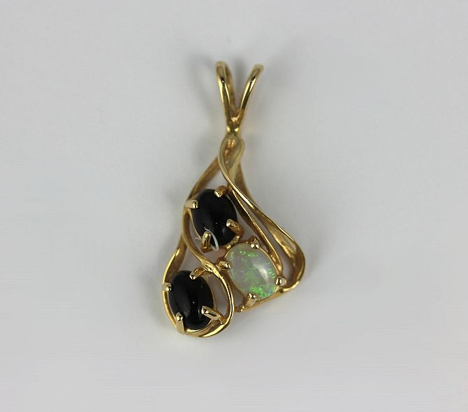 A gold, opal and black coral pendant of abstract design detailed indistinctly 14K gross weight 2.9g